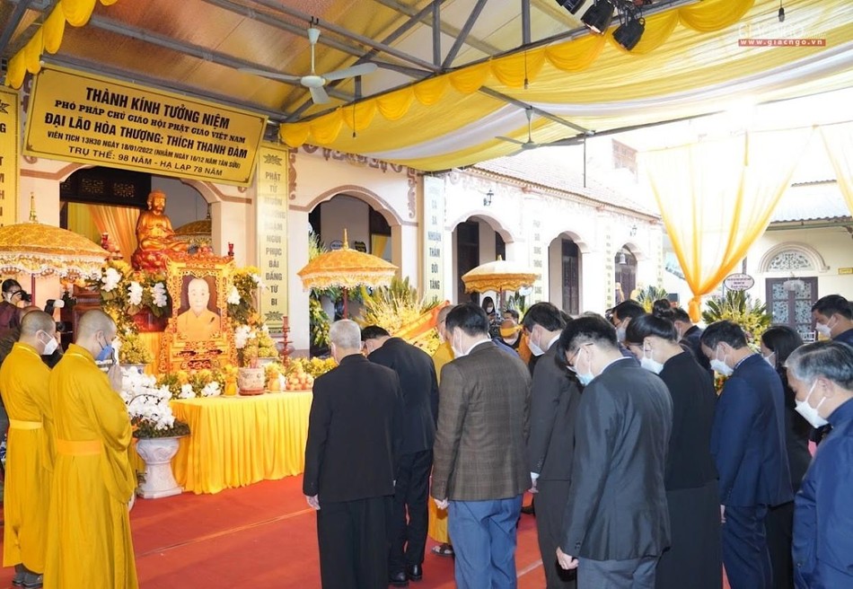 GNO - Hiện diện tại chùa Hòa Lạc (huyện Kim Sơn, tỉnh Ninh Bình), nơi tôn trí kim quan Đại lão Hòa thượng Thích Thanh Đàm, Phó Pháp chủ GHPGVN tân viên tịch, nhiều đoàn lãnh đạo cao cấp trung ương, các tỉnh thành đã dâng hương tưởng niệm.