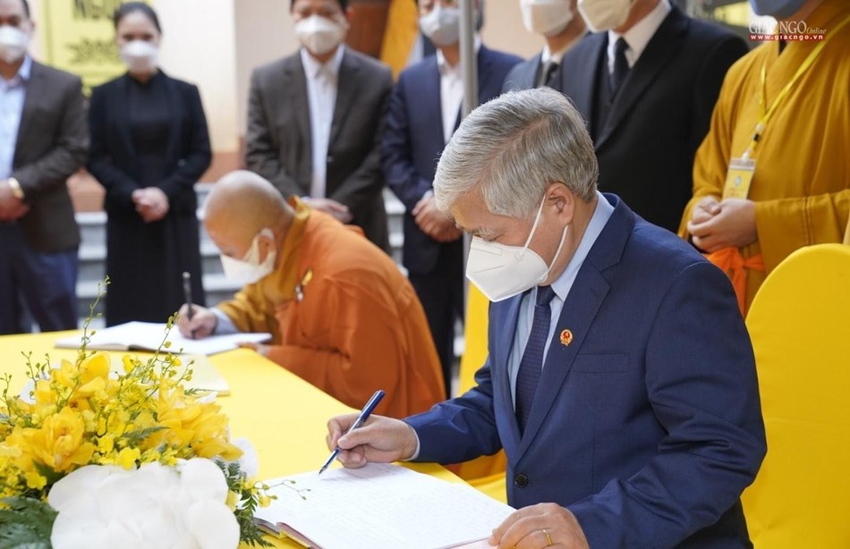 Bà Trần Thị Minh Nga, Phó Trưởng ban Tôn giáo Chính phủ dẫn đầu đoàn Ban Tôn giáo Chính phủ đã đến viếng tang và phân ưu cùng GHPGVN.
