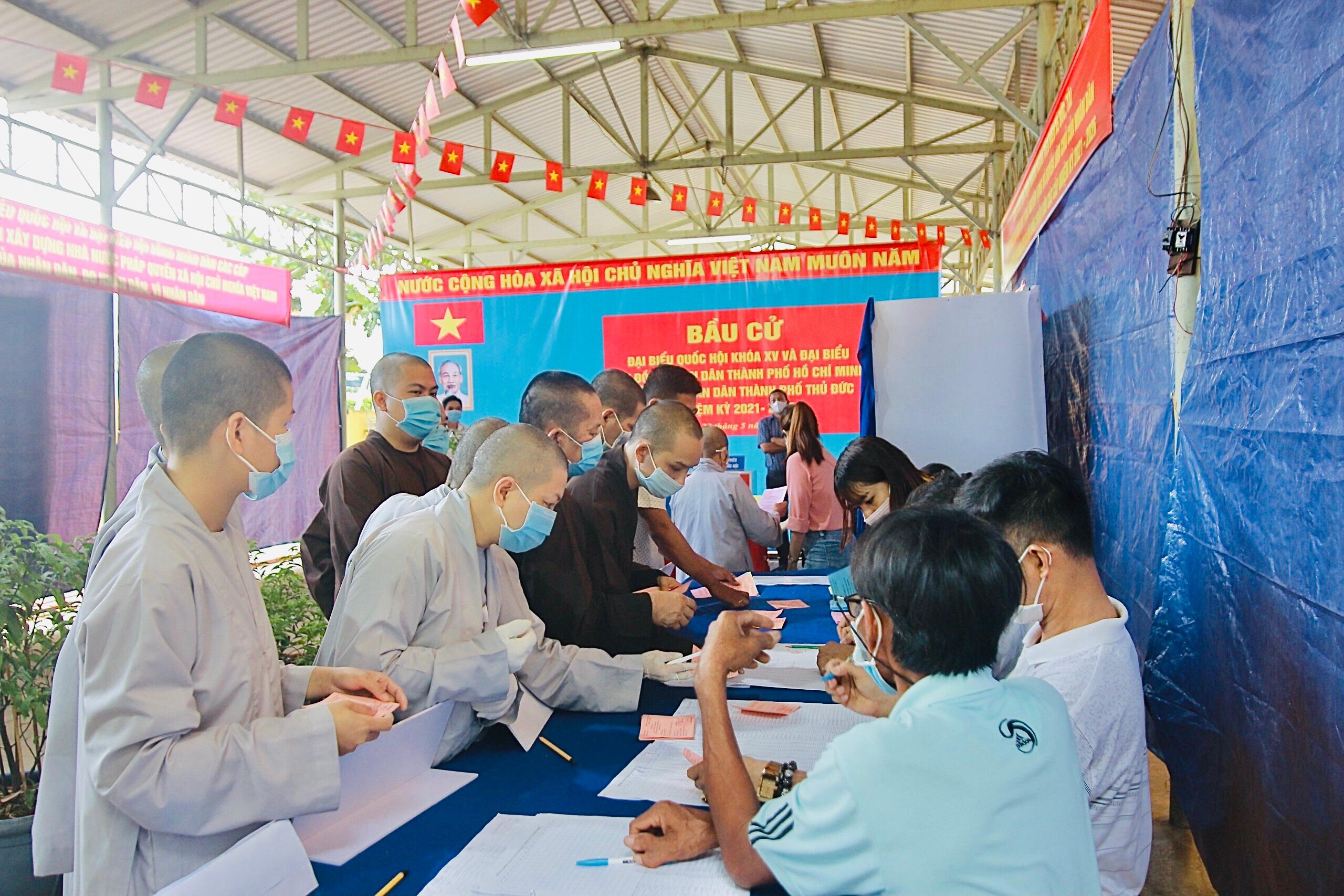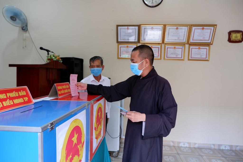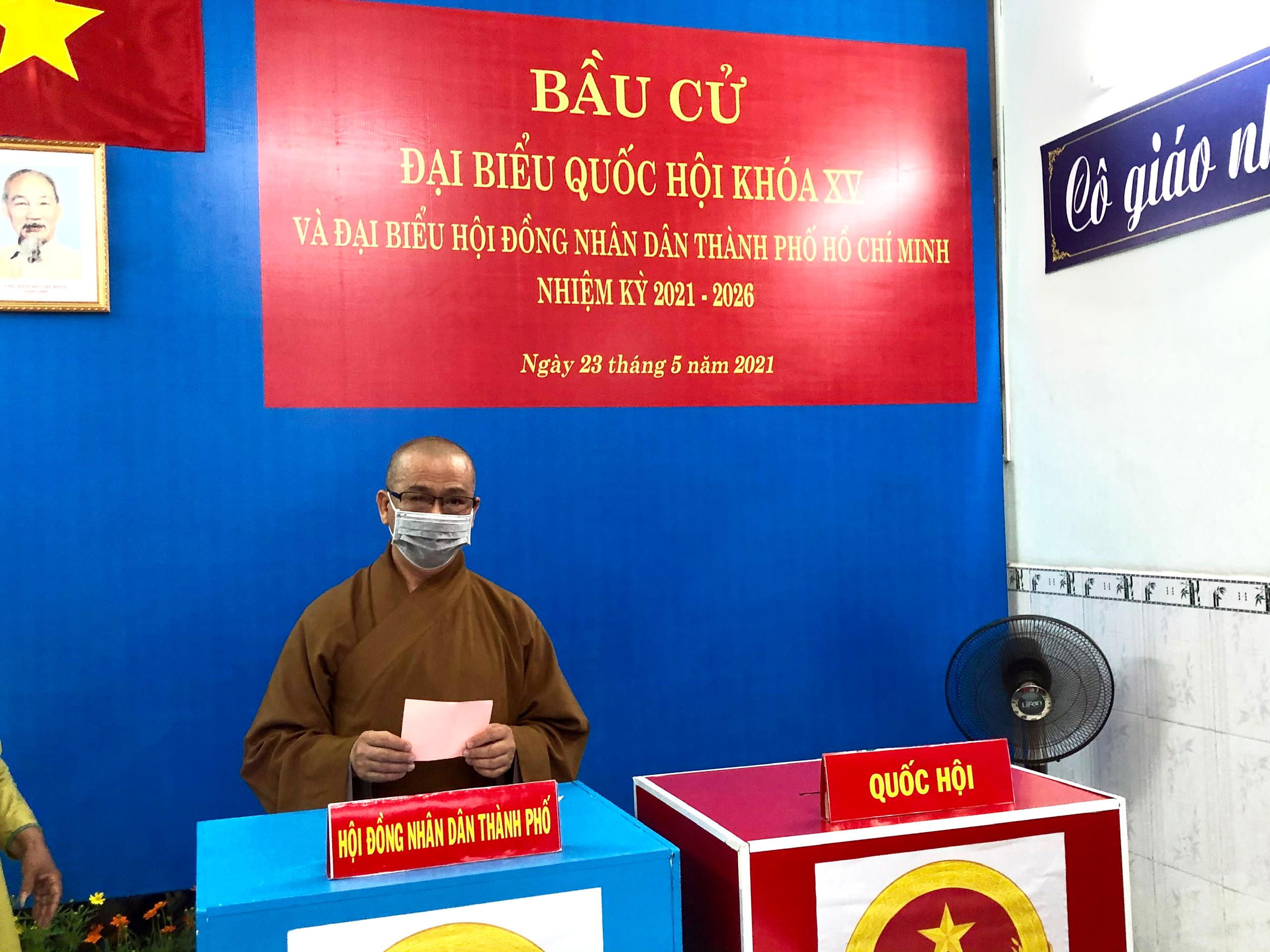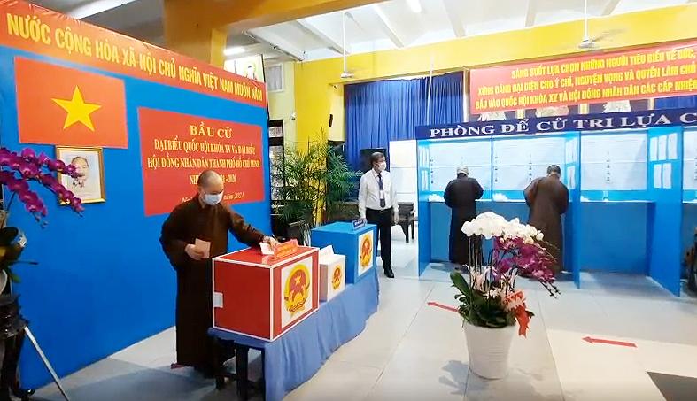 Ghi nhận của nhóm phóng viên, tại khu vực TP.HCM, chư tôn giáo phẩm Tăng Ni tại nhiều quận huyện cũng đã bắt đầu tham gia bầu cử, bỏ những lá phiếu đầu tiên tại các điểm bầu cử theo phân bố ở các địa phương, phù hợp với yêu cầu phòng chống dịch Covid-19.