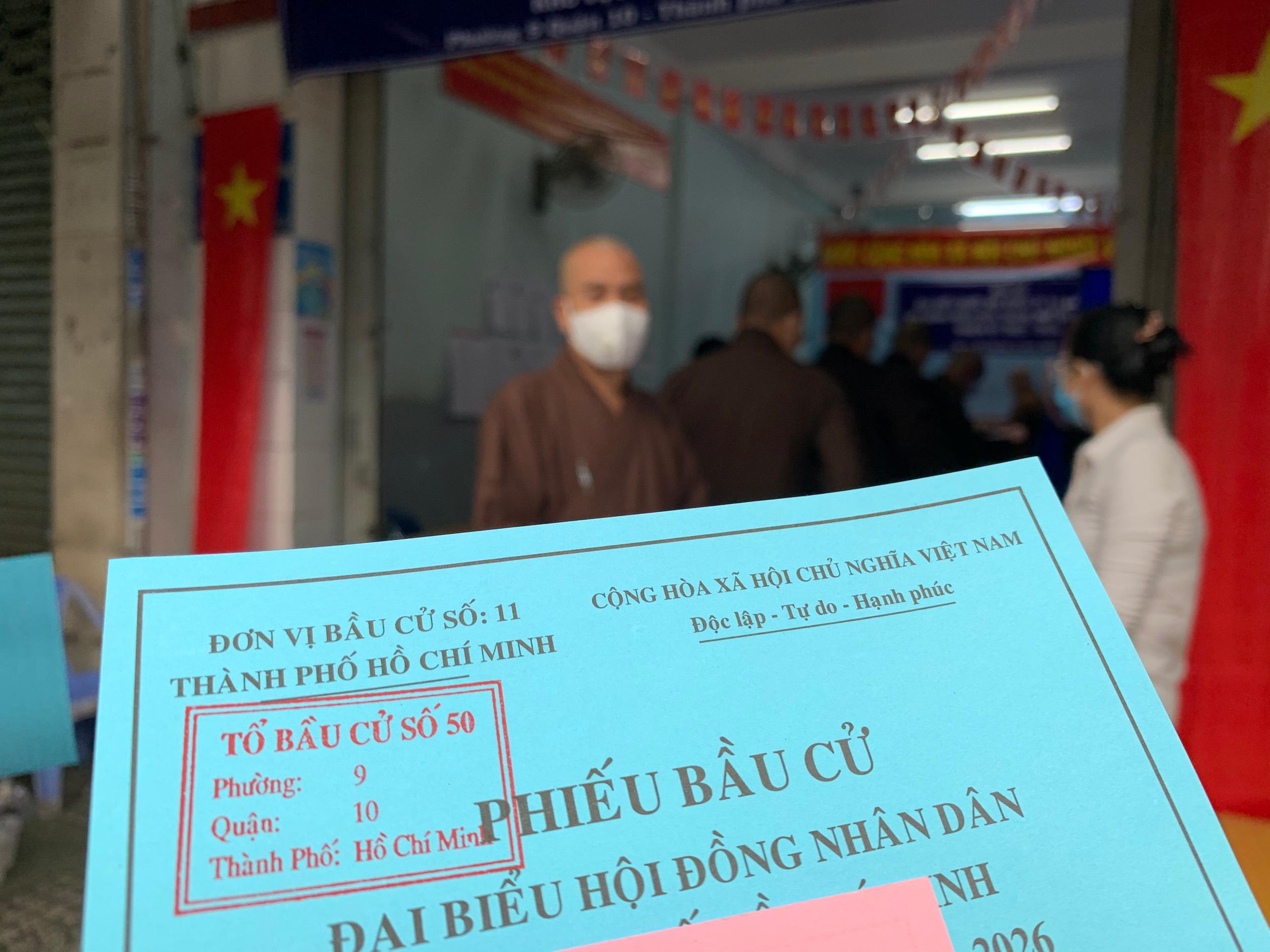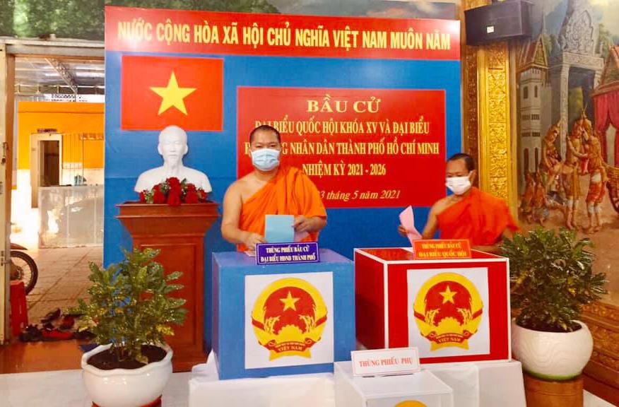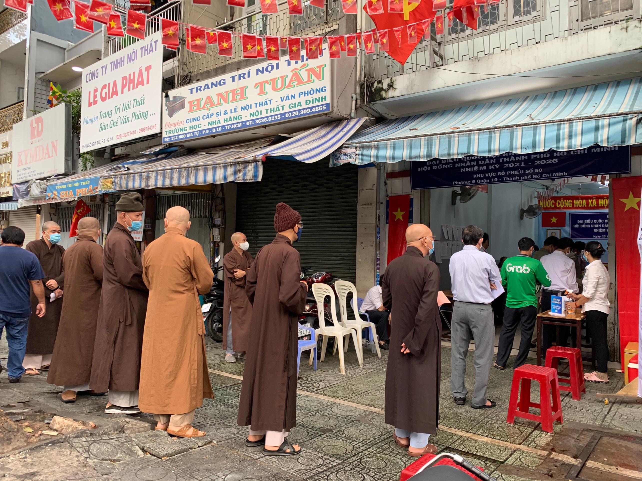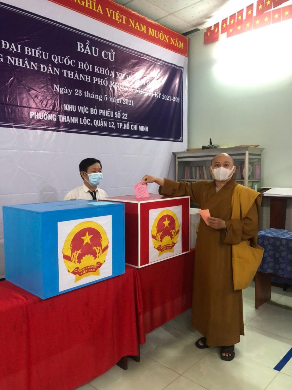 Ghi nhận của nhóm phóng viên, tại khu vực TP.HCM, chư tôn giáo phẩm Tăng Ni tại nhiều quận huyện cũng đã bắt đầu tham gia bầu cử, bỏ những lá phiếu đầu tiên tại các điểm bầu cử theo phân bố ở các địa phương, phù hợp với yêu cầu phòng chống dịch Covid-19.