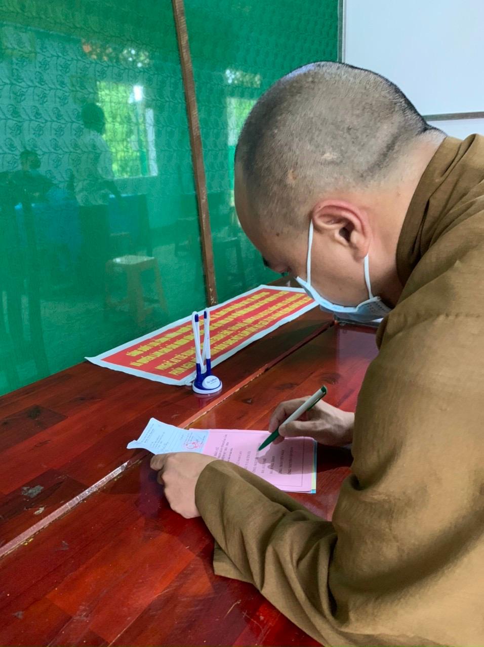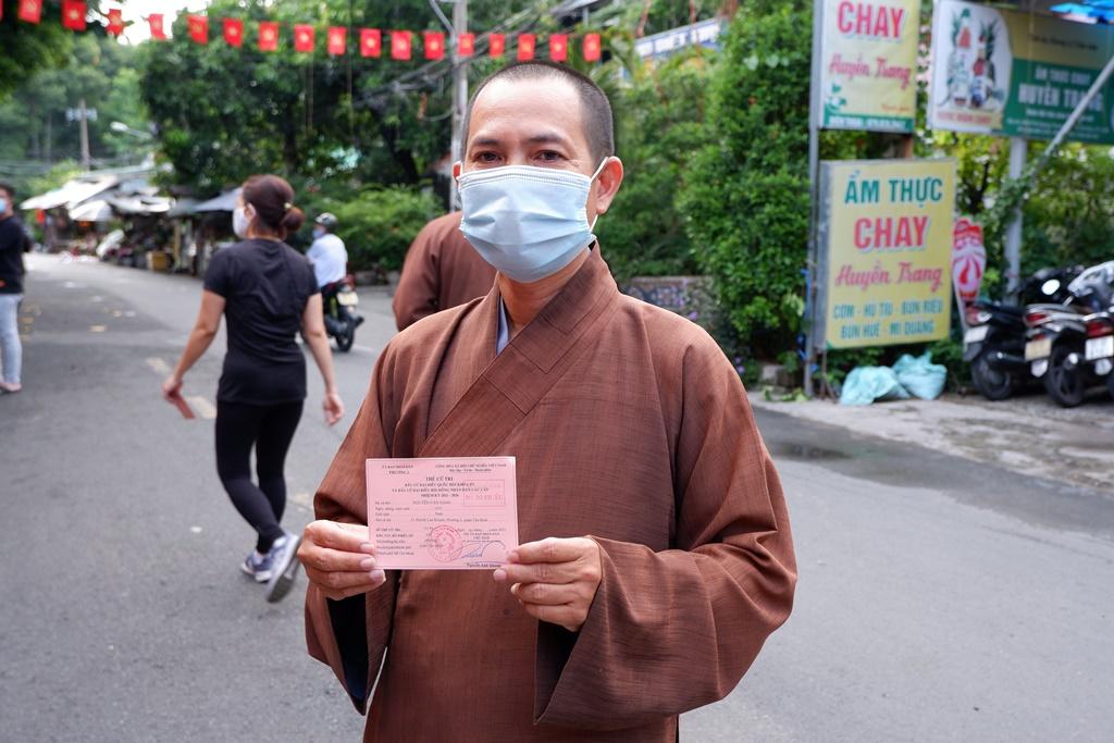 Hoà thượng Danh Lung, Ủy viên Thư ký Hội đồng Trị sự, Phó Văn phòng 2 Trung ương Giáo hội, Ủy viên Thường trực Ban Trị sự GHPGVN TP.HCM thực hiện quyền cử tri tại khu vực bỏ phiếu số 45 (chùa Candaransi, phường Võ Thị Sáu, quận 3).