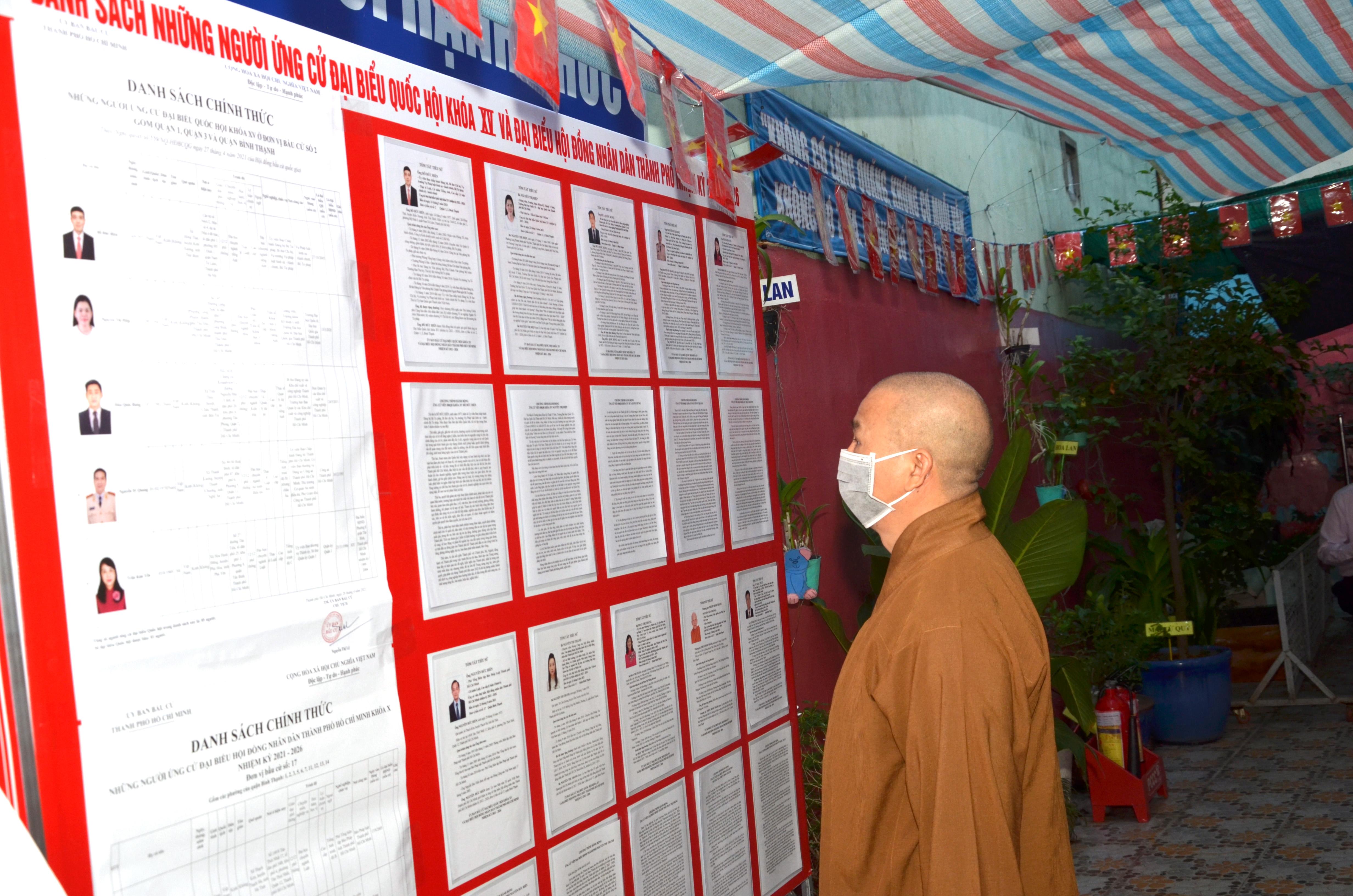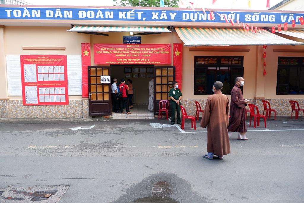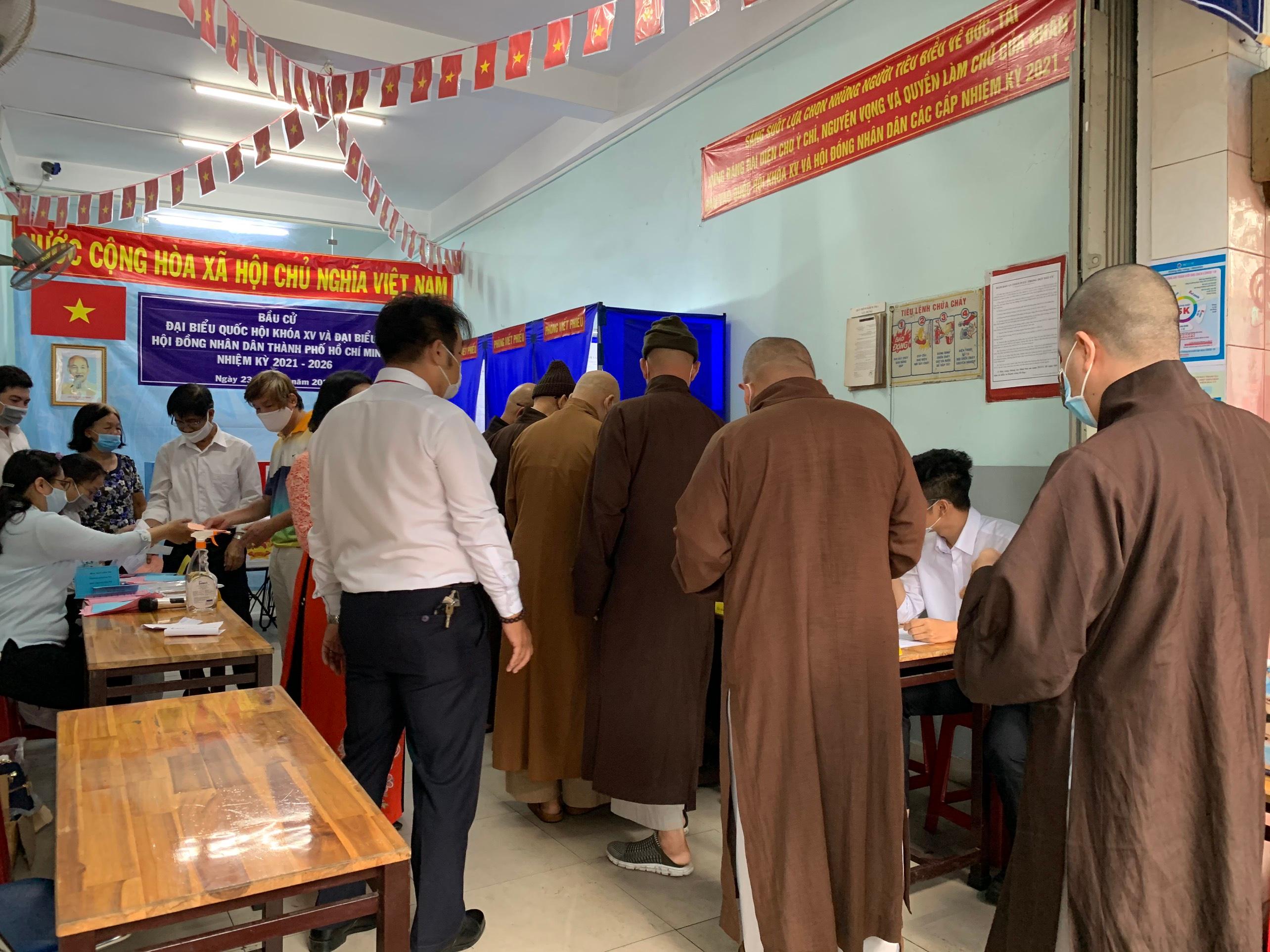 Tại một số điểm bầu cử chùa Phổ Quang (quận Tân Bình), Ấn Quang (quận 10)..., chư tôn đức và người dân trên địa bàn được sự hướng dẫn của các thành viên Tổ bầu cử, đã thực hiện các thủ tục chọn ra những vị lãnh đạo xứng đáng cho đất nước hướng đến dân giàu, nước mạnh, xã hội công bằng, dân chủ, văn minh.