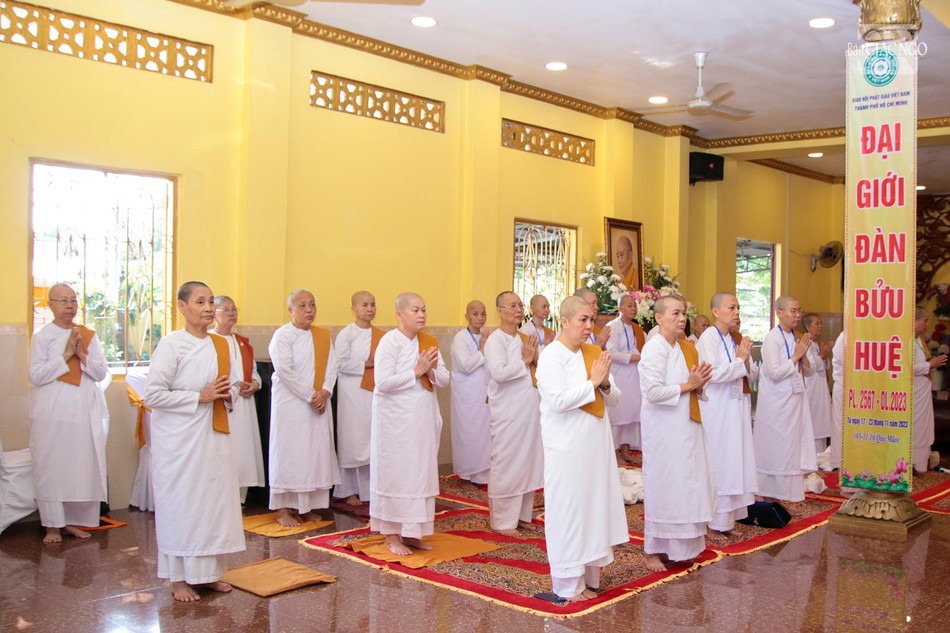 Giới tử chú tâm lắng nghe lời giáo giới của chư tôn giáo phẩm |