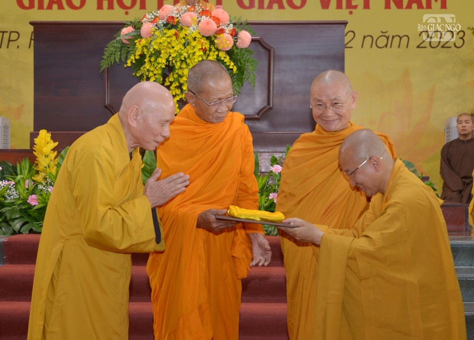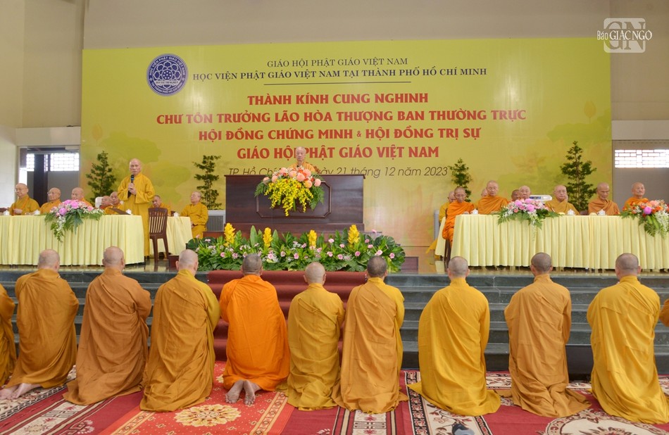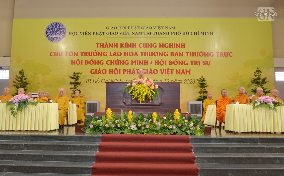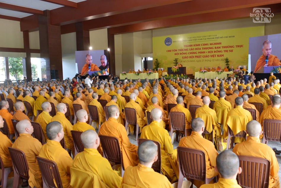Hiện diện có Đại lão Hòa thượng Thích Trí Quảng, Pháp chủ GHPGVN, Viện trưởng Học viện Phật giáo VN tại TP.HCM; chư vị Phó Pháp chủ: Trưởng lão Hòa thượng Chau Ty, Trưởng lão Hoà thượng Thích Giác Quang, Trưởng lão Hoà thượng Viên Minh; chư vị giáo phẩm Ủy viên Thường trực, Thành viên Hội đồng Chứng minh; Trưởng lão Hòa thượng Thích Thiện Nhơn, Chủ tịch Hội đồng Trị sự; chư tôn đức Ban Thường trực Hội đồng Trị sự.