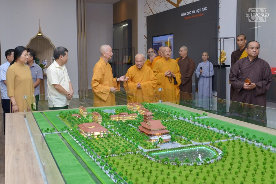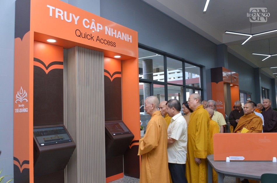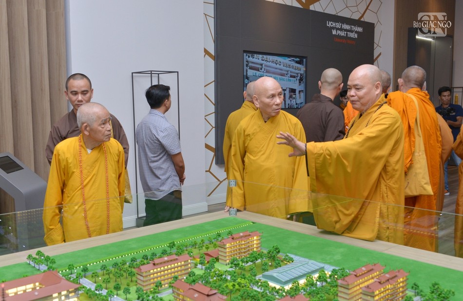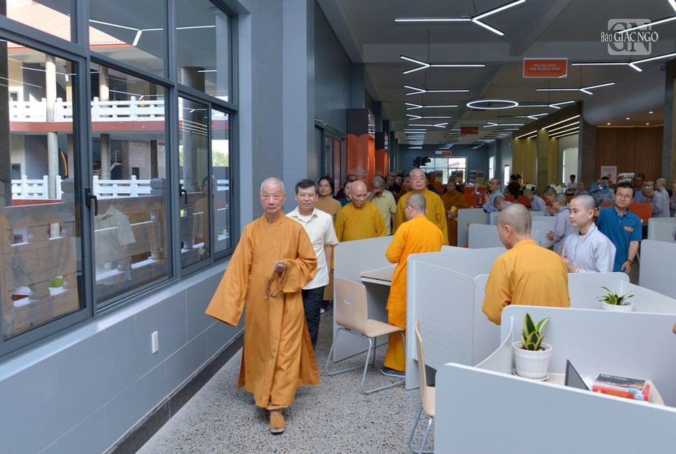 Khép lại buổi thăm hỏi, chư tôn đức Hội đồng Điều hành Học viện đã cung thỉnh chư tôn giáo phẩm quang lâm tham quan Thư viện Trí Quảng nằm trong khuôn viên cơ sở II Học viện Phật giáo VN tại TP.HCM.