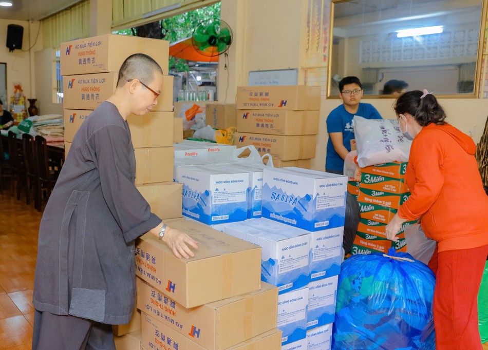 Những ngày vừa qua, dưới sự hướng dẫn của Ni sư Thích nữ Huệ Hòa, trụ trì chùa Minh Đức, hàng nghìn phần quà như: gạo, mì, sữa, chăn, màn, chiếu, gối đã được các Phật tử và người dân cùng nhau đóng gói cẩn thận. Tất cả sẽ được vận chuyển đến những khu vực chịu ảnh hưởng nặng nề nhất ở các tỉnh thành miền Bắc.