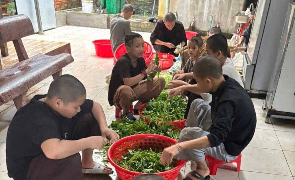 Tại chùa Quang Minh, P.Thủy Xuân, TP.Huế, trong nhiều ngày qua, chư Tăng Ni và Phật tử miệt mài bên nồi cơm và chế biến thực phẩm, khẩn trương chuẩn bị những suất ăn chay nóng hổi để kịp thời gửi đến bà con đang bị cô lập trong vùng ngập lụt.