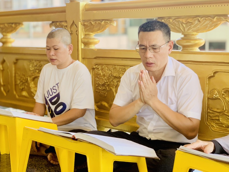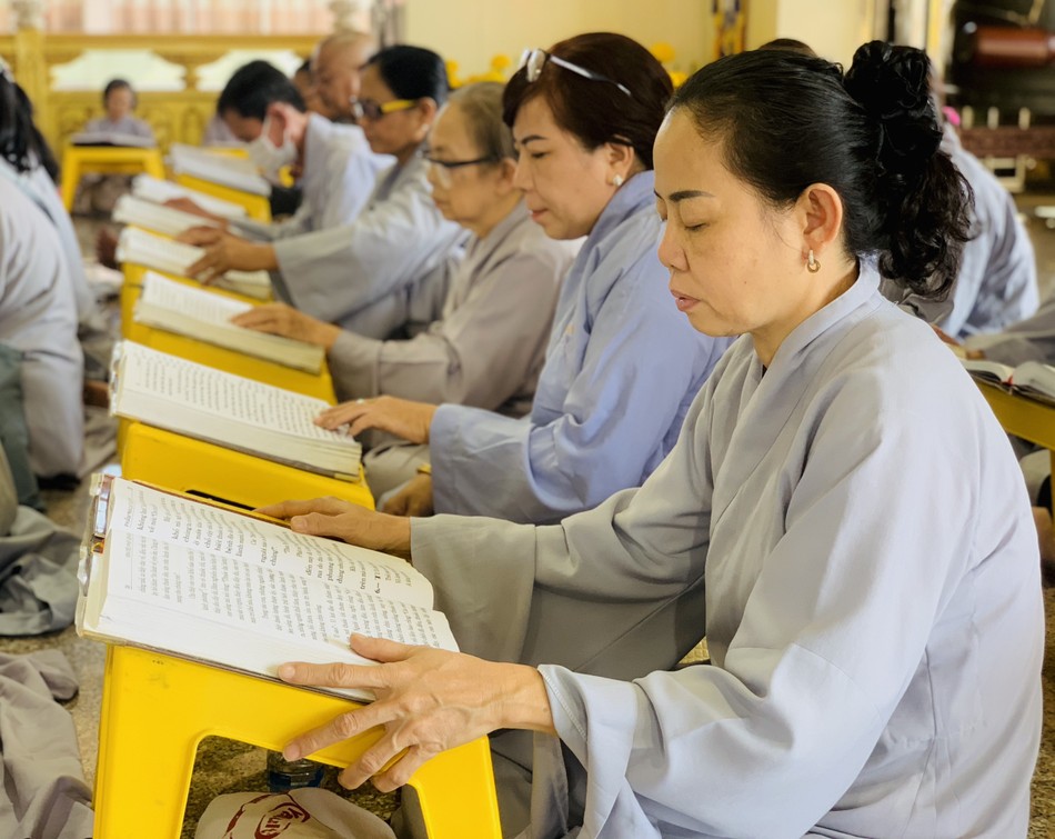 Pháp hội tụng kinh Pháp hoa được chia làm 3 thời tụng trọn bộ 7 quyển (28 phẩm) trong ngày dưới sự hướng dẫn của Hòa thượng Thích Hoằng Tri, trụ trì chùa Vạn Đức.