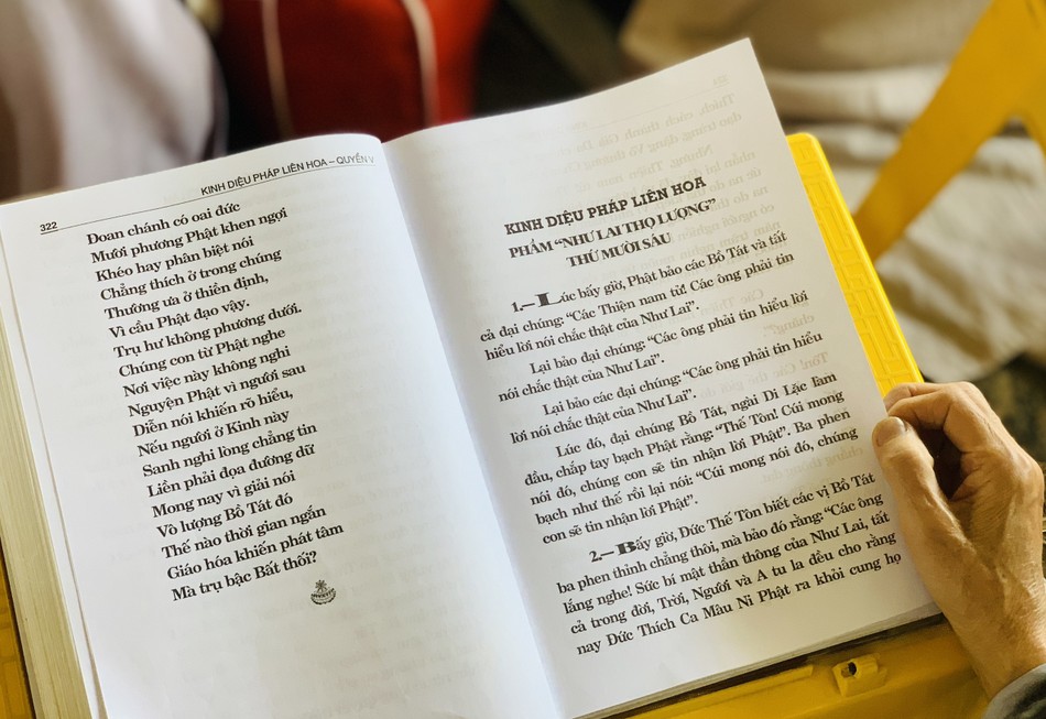 GNO - Chùa Vạn Đức (TP.Thủ Đức) đã trang nghiêm tổ chức khai pháp hội tụng kinh Pháp hoa nhân dịp đầu năm mới vào sáng mùng 2 Tết (11-2-2024).