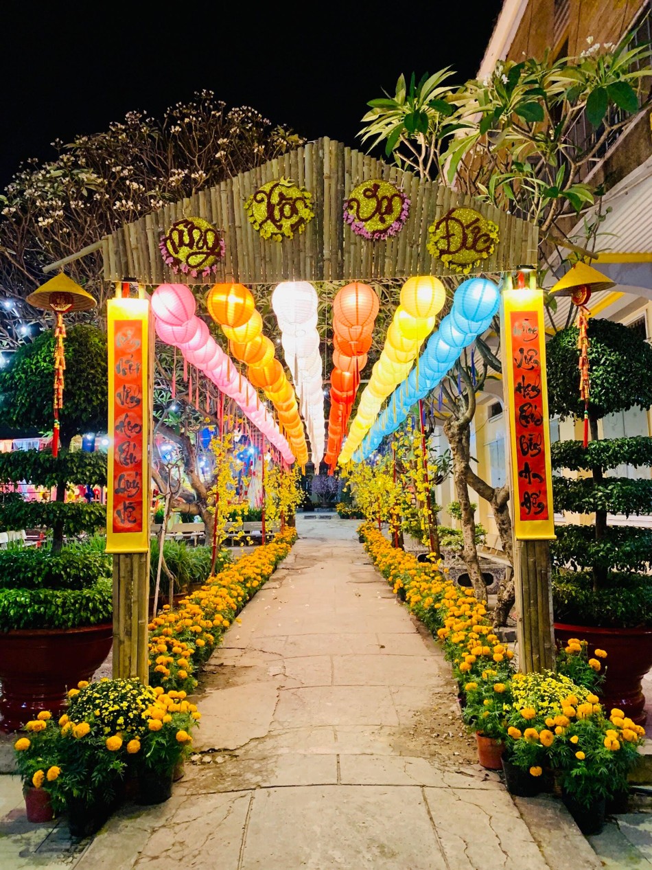 Đường hoa, phố lồng đèn, thư pháp, cây ước nguyện, nhà quê, các gian hàng lộc xuân, thỉnh kinh sách... với hơn 10 tiểu cảnh đã được chư Tăng và các Phật tử khẩn trương thực hiện, tạo nên không gian tràn ngập sắc xuân trong chốn thiền môn, đón mừng người dân về chiêm bái.