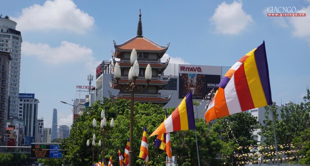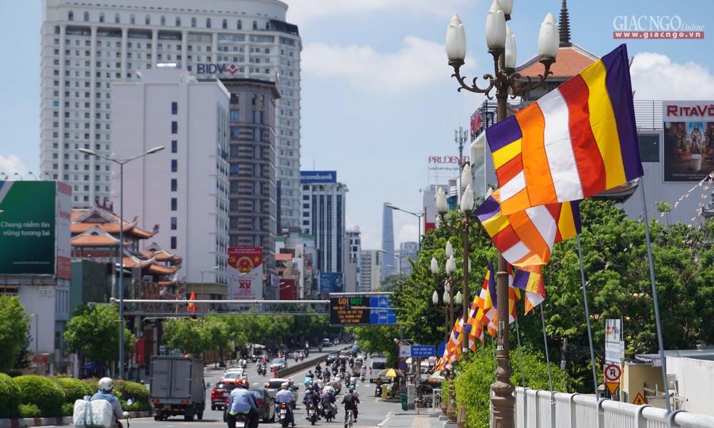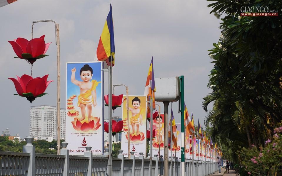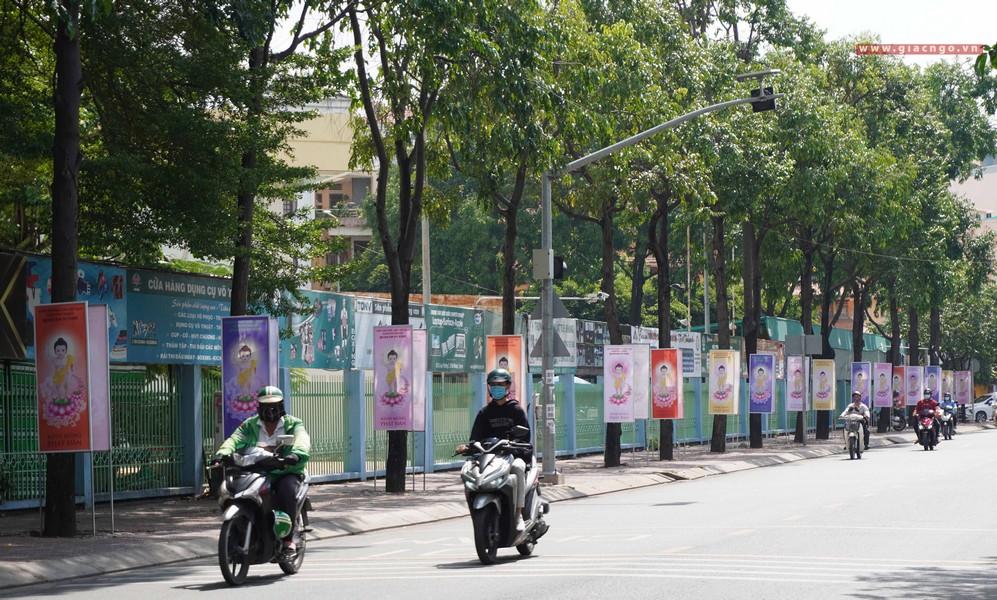 Quanh hai tuyến đường Trường Sa và Hoàng Sa các chùa như: Khuông Việt, Pháp Hoa, Candaransi, Vĩnh Nghiêm, Hải Đức, Vạn Thọ, Quan Âm tu viện… treo cờ Phật giáo, băng rôn Kính mừng Phật đản tạo nên một khung cảnh mùa sen tháng Tư đẹp nao lòng người.