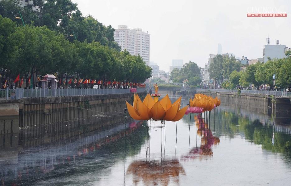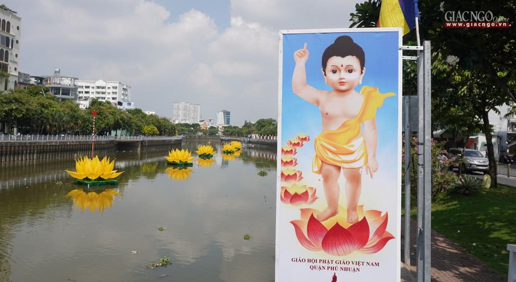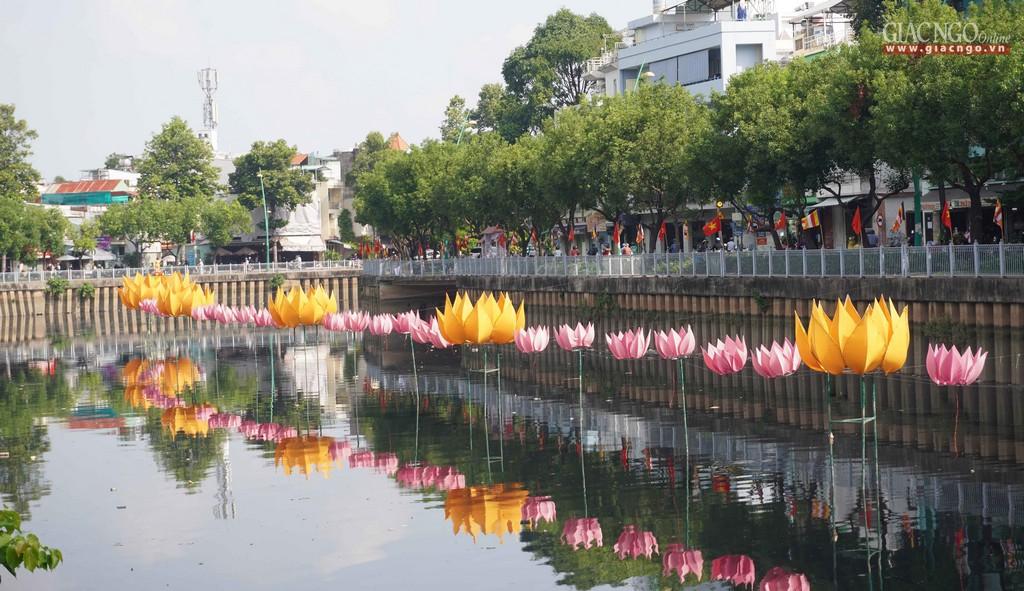 Ngoài 7 đóa sen hồng chư tôn đức và Phật tử Quan Âm tu viện (quận Phú Nhuận) thiết trí thì ngay từ đầu kênh Nhiêu Lộc quận Tân Bình, 7 đóa sen vàng cùng tôn tượng Phật đản sanh do chư Tăng và Phật tử chùa Giác Uyển (Huỳnh Văn Bánh, quận Phú Nhuận) thực hiện làm cho mùa sen tháng Tư trên bờ kênh thêm rộn ràng niềm vui.