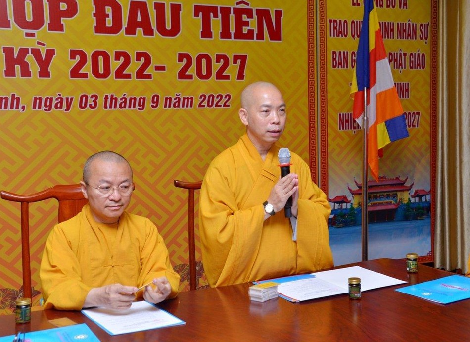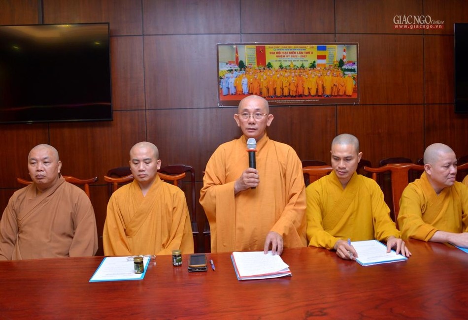 Thay mặt Ban Thường trực Ban Trị sự GHPGVN TP.HCM, Thượng tọa Thích Thiện Quý, Phó ban kiêm Chánh Thư ký Ban Trị sự GHPGVN TP.HCM phát biểu chúc mừng Thượng tọa Thích Quang Thạnh đảm nhiệm cương vị mới, cùng thành viên Ban Giáo dục Phật giáo TP.HCM nhiệm kỳ 2022-2027.