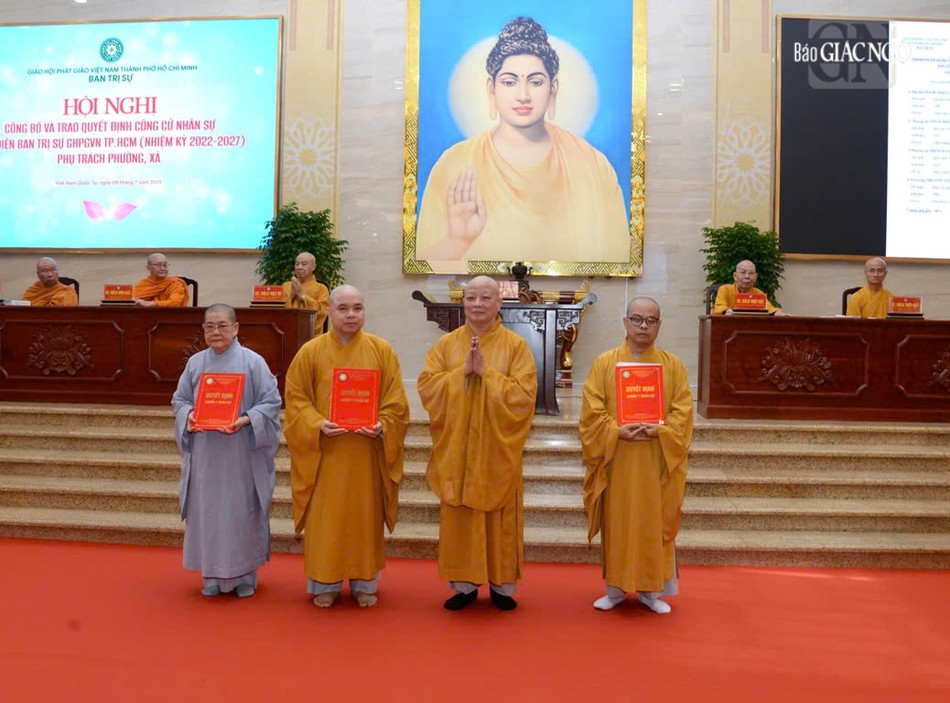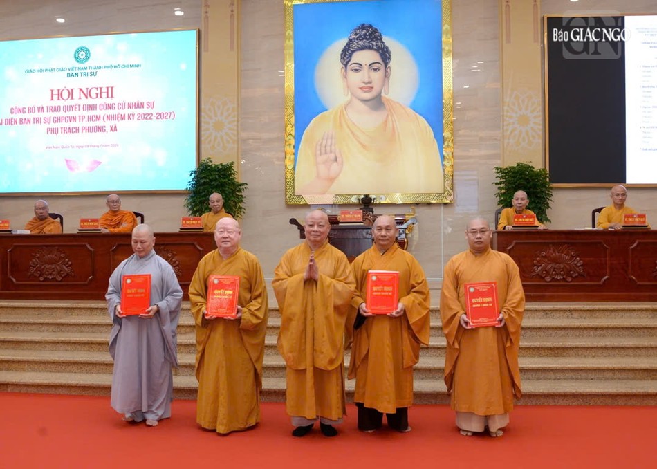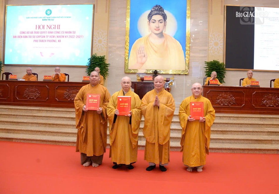 Được biết, TP.HCM có 168 phường, xã, đặc khu. Trong đợt này, Ban Trị sự mới trao quyết định đến 22 nhóm đại diện là chư Tăng Ni tại 102 phường, xã.
