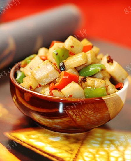 Đun sôi dầu, rồi thêm gừng xào qua cho thơm, đổ củ sen xào đến khi gần chín (xào ngay củ sen sau khi thái sẽ giúp tránh bị đen). Nêm vào một thìa to tương ớt, xào đều.