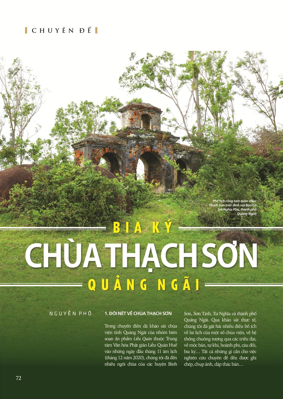 Đó là nhân duyên được Ban Biên soạn cho biết về chuyên đề “Di sản Phật giáo Quảng Ngãi” trên giai phẩm phẩm Liễu Quán xuân Tân Sửu được phát hành vào ngày 31-1-2021 vừa qua, với kỳ vọng “chỉ là bước khởi đầu của hành trình lâu dài trong việc tiếp cận và tìm hiểu về miền di sản ấy”.
