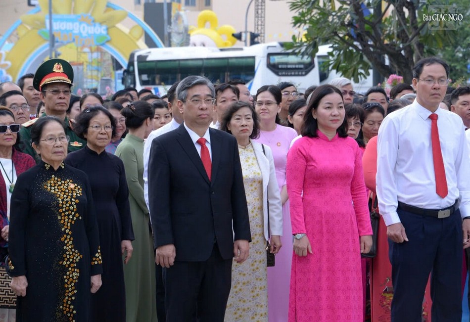 Trước tượng đài Chủ tịch Hồ Chí Minh (đường Nguyễn Huệ, phường Sài Gòn, TP.HCM), đại biểu dâng hoa, dành phút tưởng niệm bày tỏ lòng tưởng nhớ, tri ân vị lãnh tụ vĩ đại của dân tộc Việt Nam - người đã cống hiến trọn cuộc đời mình cho sự nghiệp giải phóng dân tộc, giành độc lập, chủ quyền cho đất nước, cho cuộc sống ấm no, hạnh phúc của nhân dân.