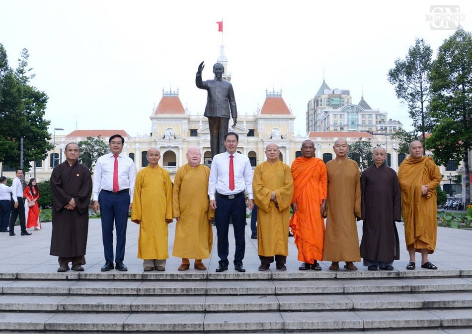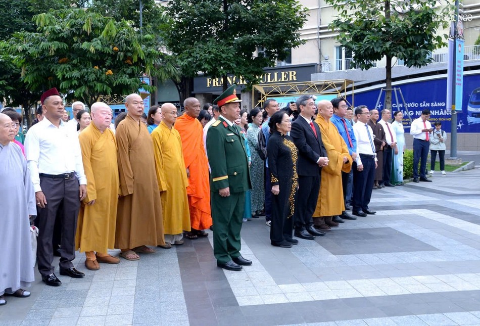 Tháp tùng đoàn có thành viên Ban Thường trực UBMTTQVN TP.HCM; Hòa thượng Thích Lệ Trang, Phó Chủ tịch Hội đồng Trị sự, Trưởng ban Trị sự GHPGVN TP.HCM; cùng đại biểu dự Đại hội MTTQVN TP.HCM lần thứ I, nhiệm kỳ 2025-2030.