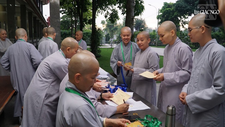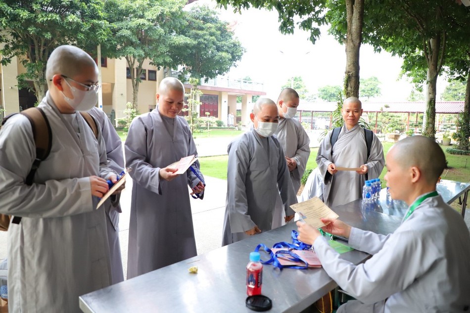 Tại chùa Thanh Tâm, Ban Điều hành, Ban Quản giới tử tích cực hỗ trợ cho giới tử làm các thủ tục, trao thẻ đeo, nhận đồ dùng cá nhân, nhận phòng lưu trú, an đơn.