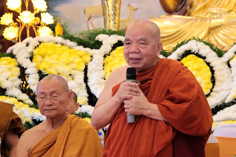 Trưởng lão Hòa thượng Phó Pháp chủ nêu lên công hạnh của Phật hoàng Trần Nhân Tông, Thiền sư Vạn Hạnh đã đóng góp cho sự phát triển của Phật giáo Việt Nam. Tăng đoàn Phật giáo Nguyên thủy tại Việt Nam cũng đã đóng góp tích cực cho ngôi nhà chung của Giáo hội và đất nước. Trưởng lão Hòa thượng chúc lành đến các giới tử tinh tấn tu tập, ngoài việc tôn trọng giới luật, giáo luật và pháp luật của Nhà nước, các giới tử cần phải là những người tu hành gương mẫu, có đạo đức, có trí tuệ để đóng góp vào sự phồn thịnh của Đạo pháp và Dân tộc.