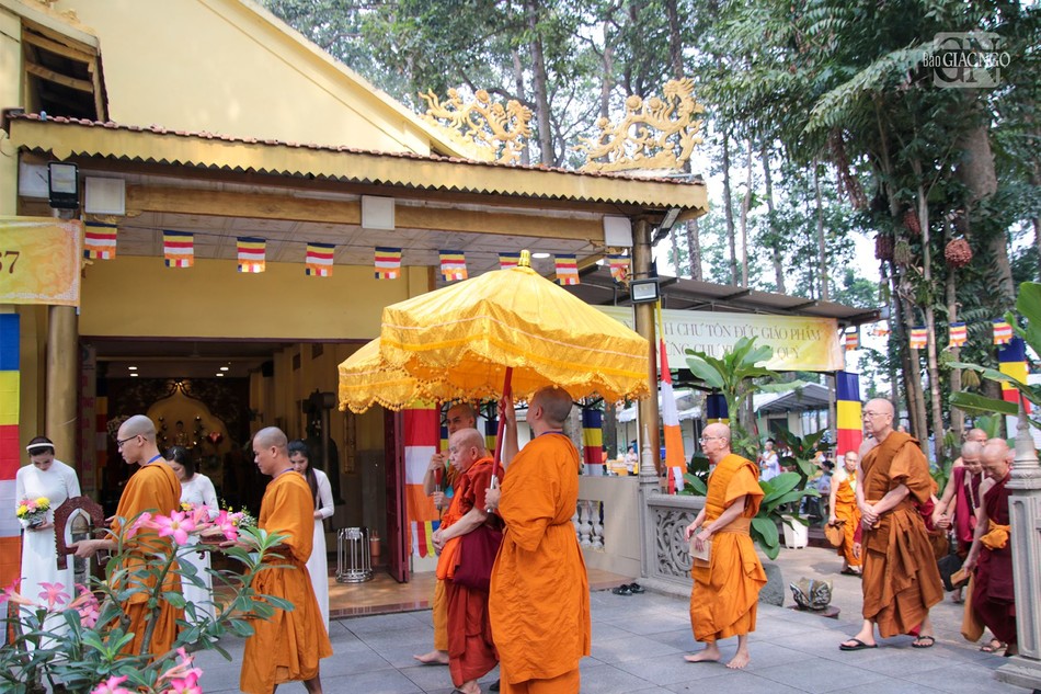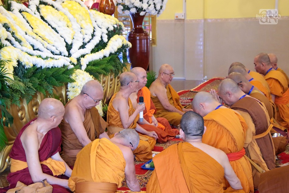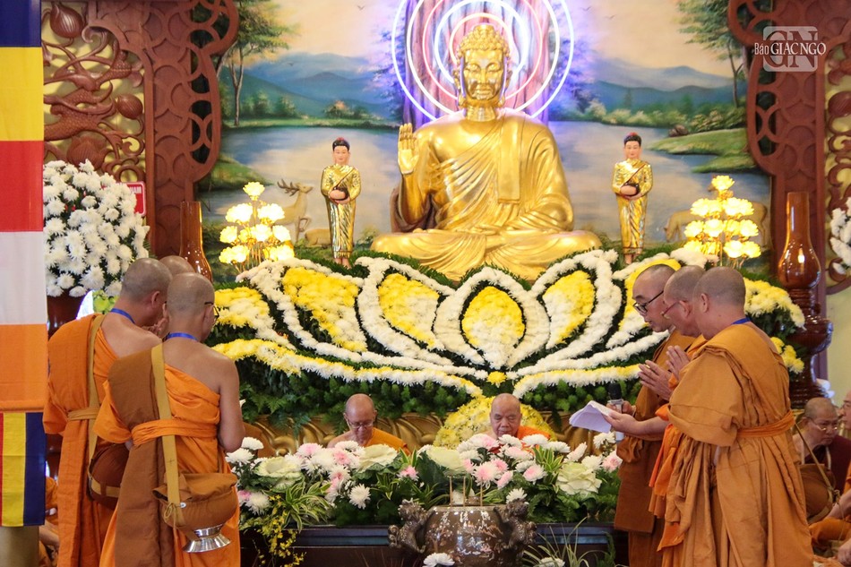 Đại diện Ban Kiến đàn đã cung thỉnh Hòa thượng Thiện Tâm, Phó Chủ tịch Hội đồng Trị sự, đương vi Hòa thượng Đường đầu; Hòa thượng Hộ Chánh làm Yết-ma A-xà-lê; Hòa thượng Minh Giác làm Giáo thọ A-xà-lê, cùng chư vị tôn chứng: Hòa thượng Thiện Nhân, Hòa thượng Tăng Định, Hòa thượng Pháp Chất, Thượng tọa Thiện Hạnh, Thượng tọa Thiện Đạt, Thượng tọa Quang Minh, Thượng tọa Pháp Nhiên truyền giới cho 28 giới tử Tỳ-kheo, Sa-di và Tu nữ cầu thọ giới pháp.