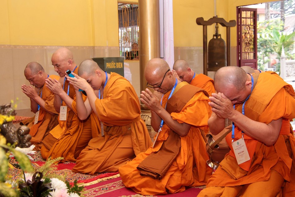 14 vị nữ tu vân tập trước Hội đồng Thập sư, tác pháp cầu thọ giới Tu nữ. Sau khi nhận giới, Hội đồng Thập sư đã tụng kinh chúc lành đến các vị tân Tu nữ.