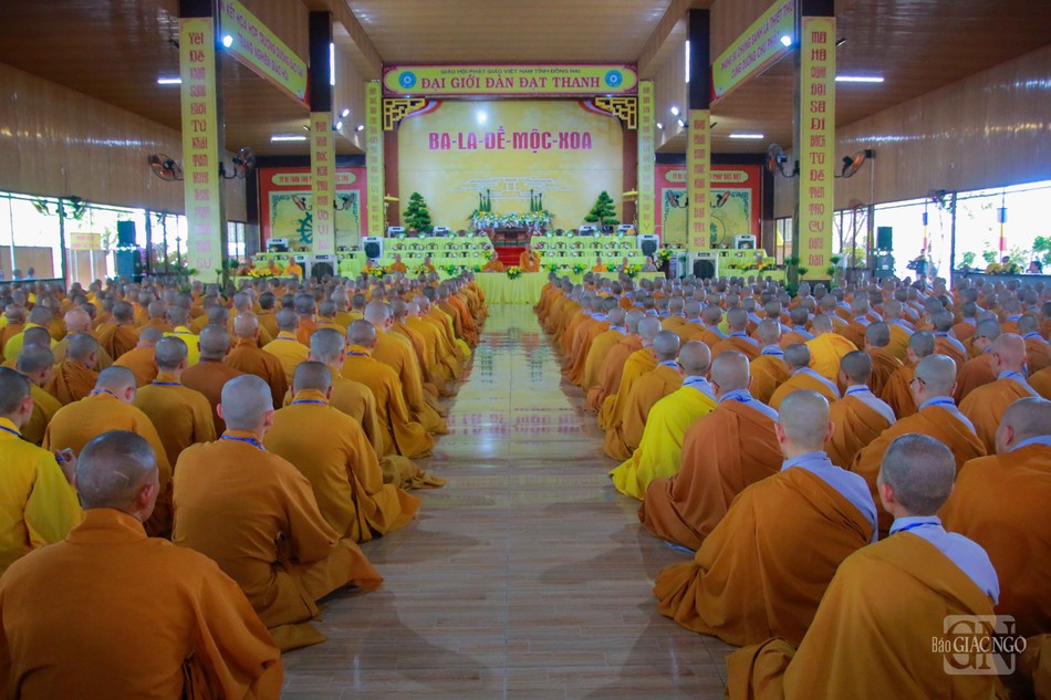 Tiếp nối chương trình, Trưởng lão Hòa thượng Thích Thiện Đạo, Thành viên Hội đồng Chứng minh, Chứng minh Ban Trị Sự GHPGVN tỉnh Đồng Nai đã quang lâm giáo giới sách tấn các giới tử. Đại đức Thích Nguyên Hưng đương vi điển lễ Đại giới đàn hướng dẫn các giới tử phương thức đăng đàn thọ lãnh giới pháp.
