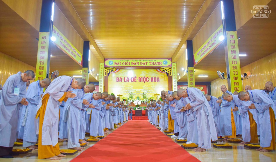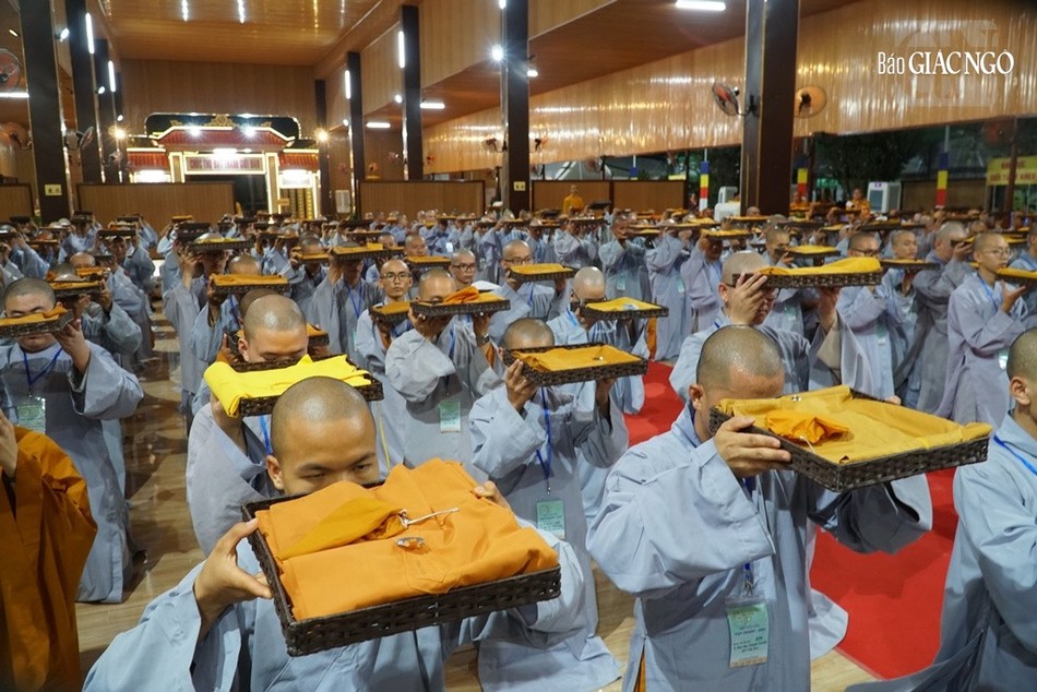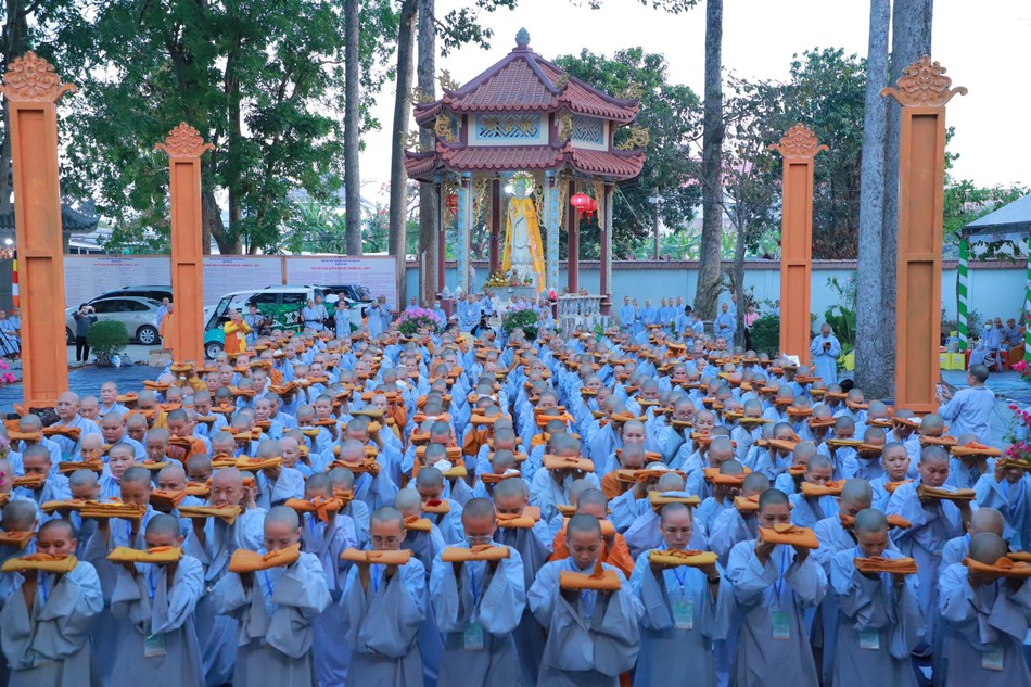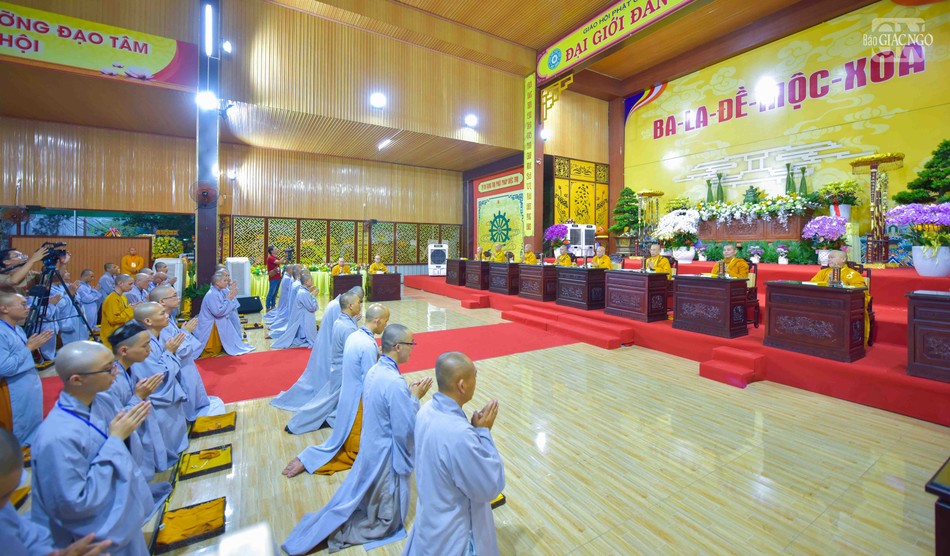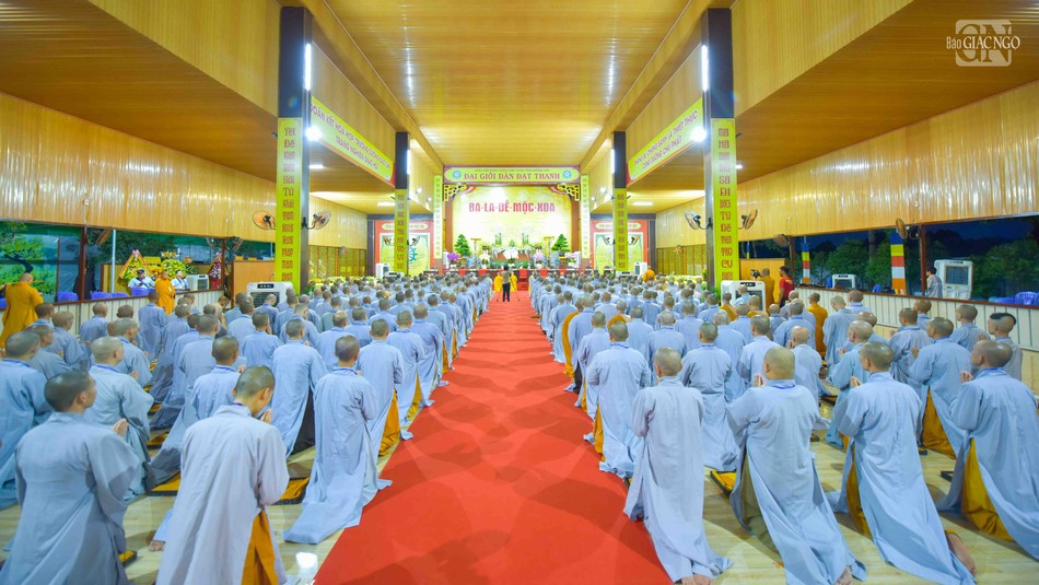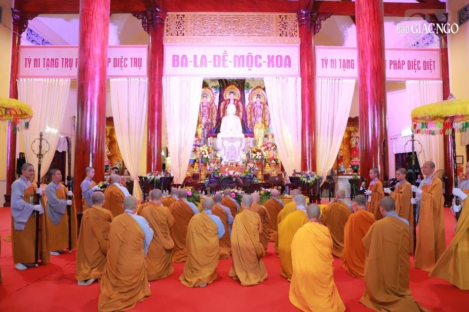 Chư tôn đức giới sư đã quang lâm giới trường, đảnh lễ Tam bảo và trang nghiêm thanh tịnh truyền giới pháp như luật đến các giới tử.
