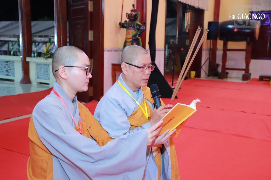 Chư tôn đức giới sư đàn Sa-di niêm hương bạch Phật - Ảnh: Quảng Đạo/BGN
