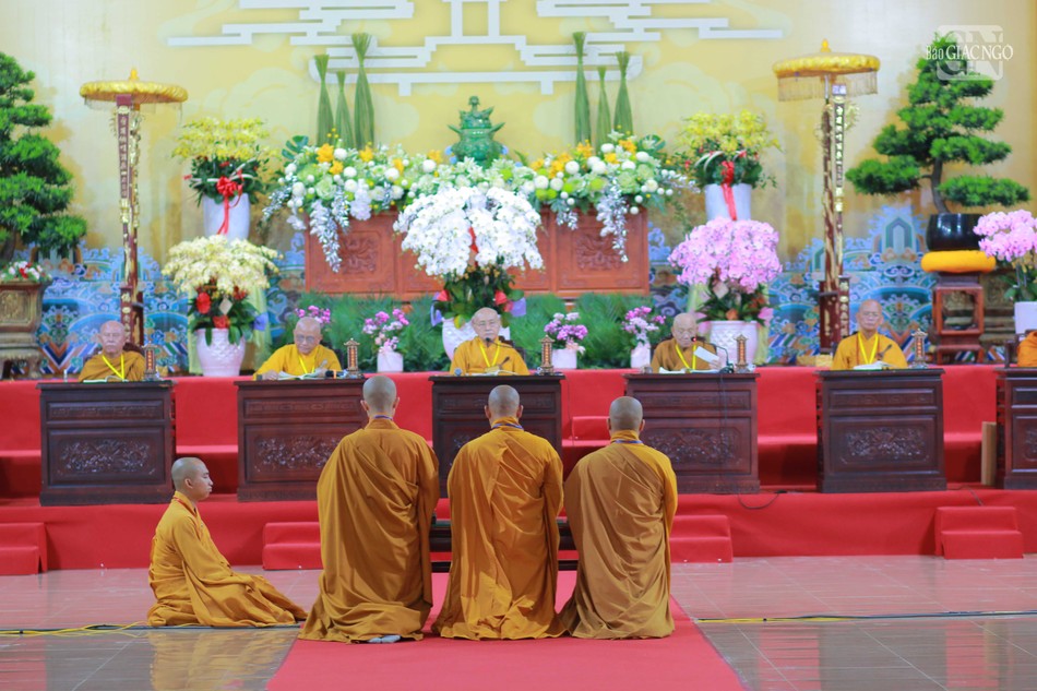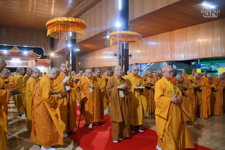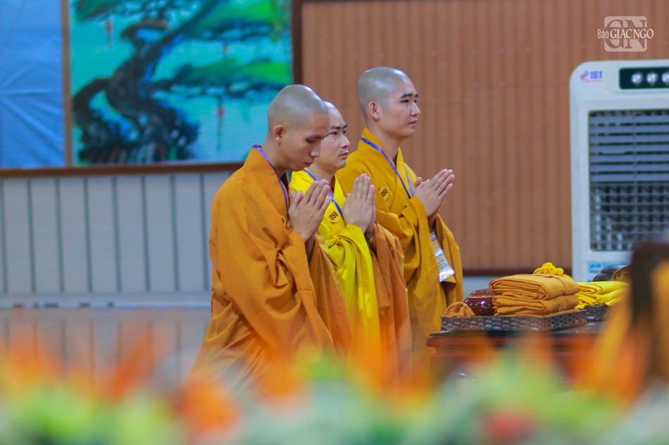 Đại đức Thích Nguyên Hưng hướng dẫn giới tử thỉnh Hòa thượng Đường đầu cùng Yết-ma A-xà-lê và Giáo thọ A-xà-lê. Sau đó, Hòa thượng Giáo thọ hướng dẫn giới tử thỉnh Tôn chứng Tăng-già.
