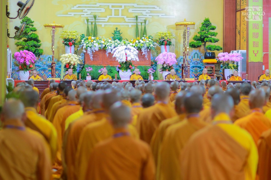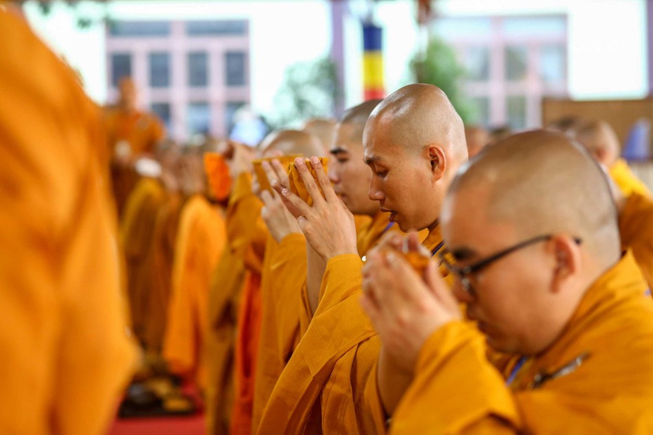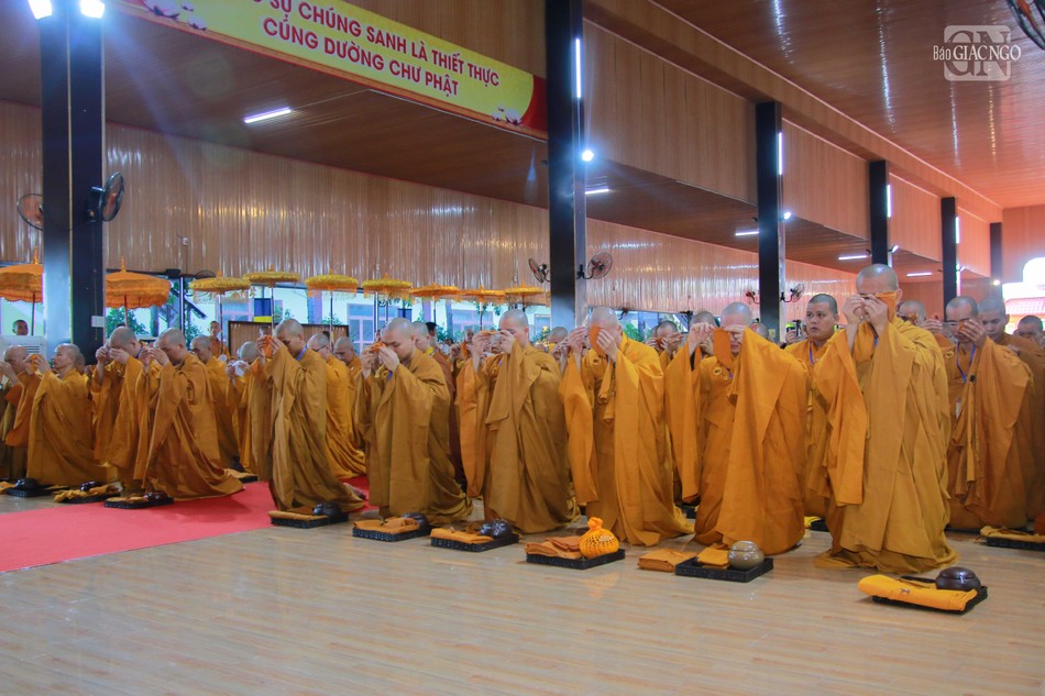 Sau lời tác bạch cung thỉnh của đại diện giới tử, chư tôn đức giới sư quang lâm giới trường. Giới tử chí thành đảnh lễ nghinh đón.