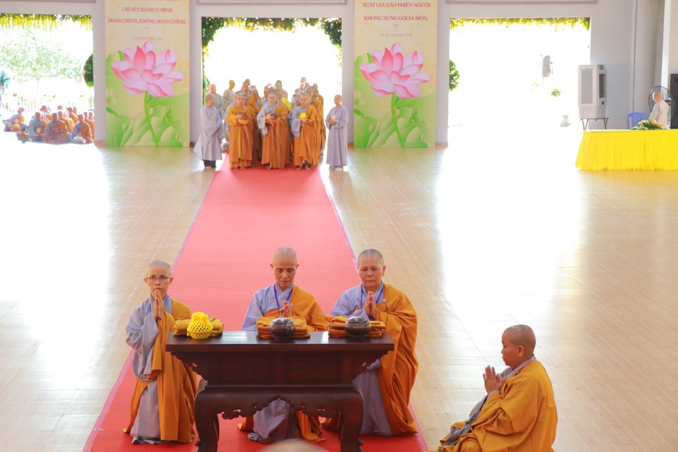 Theo luật Phật chế, giới tử Ni muốn thọ giới Tỳ-kheo-ni phải đối trước Hội đồng Thập sư Tăng xin Chánh pháp yết-ma, chư Tăng đồng ý, pháp yết-ma thành tựu thì chúng giới tử mới được đắc giới thể Tỳ-kheo-ni. Theo đó, Ni trưởng Thích nữ Như Như đại lao chư tôn đức Hội đồng Thập sư Ni hướng dẫn chư giới tử cầu giới trước Hội đồng Thập sư Tăng.