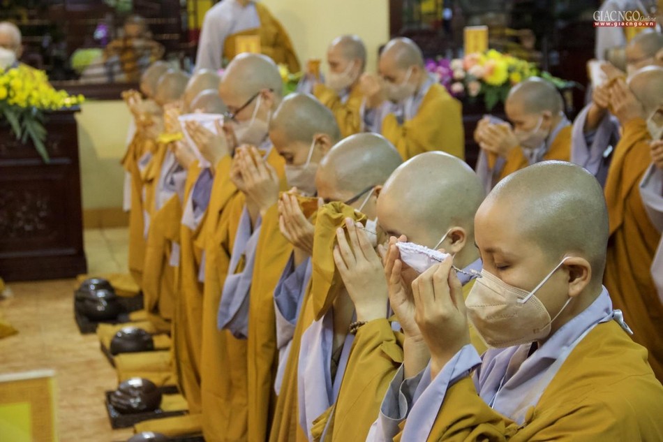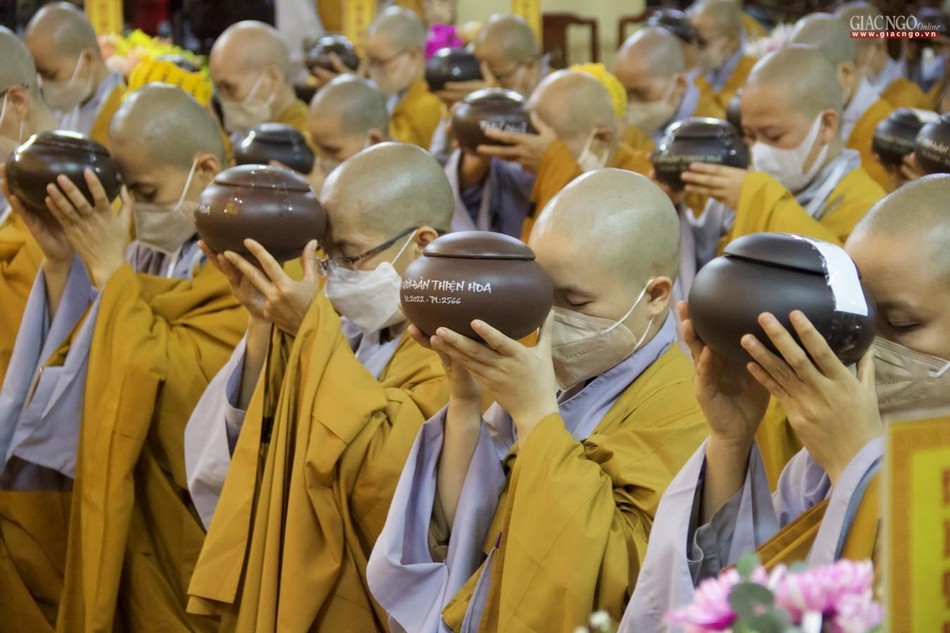 Sau khi viên thành giới thể, chư tôn đức Ni hướng dẫn giới tử đảnh lễ tri ân Đại Tăng, đã thương tưởng mà trao truyền Chánh pháp của Đức Như Lai cho hàng Ni lưu, kính nguyện trọn đời vâng giữ và thực hành.