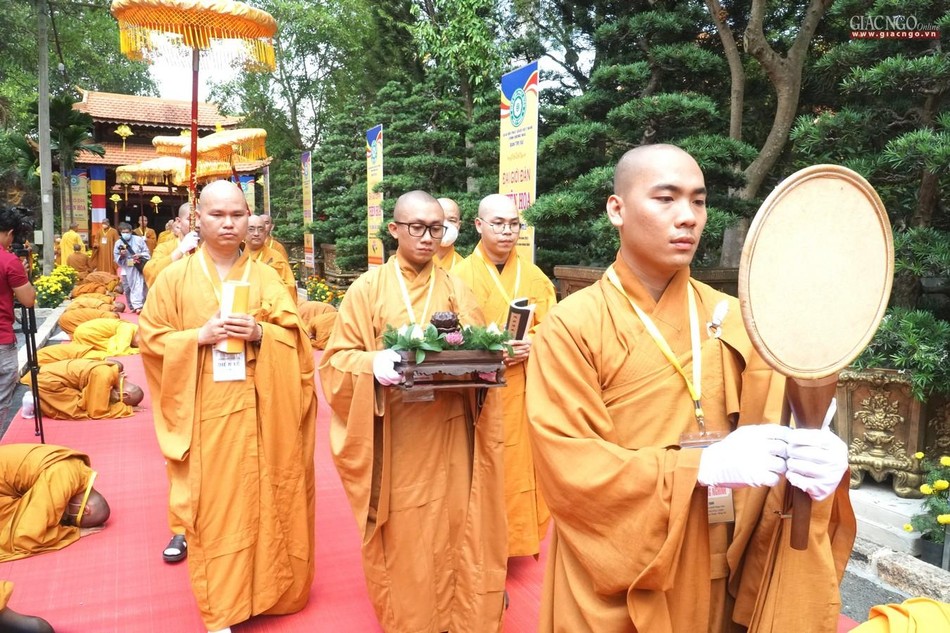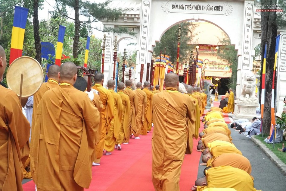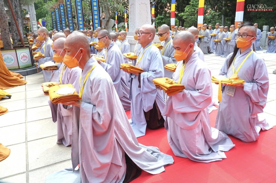 Chư tôn đức giới sư đã quang lâm giới trường, đảnh lễ Tam bảo và trang nghiêm thanh tịnh truyền giới pháp như luật đến các giới tử.