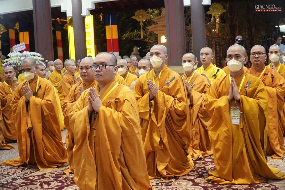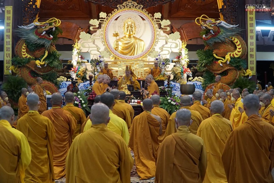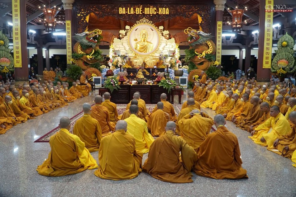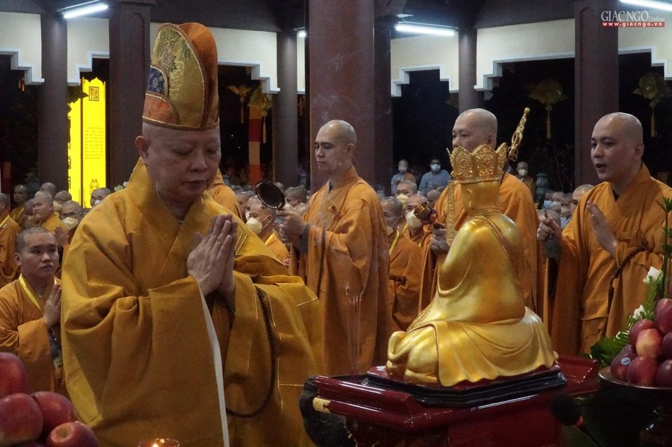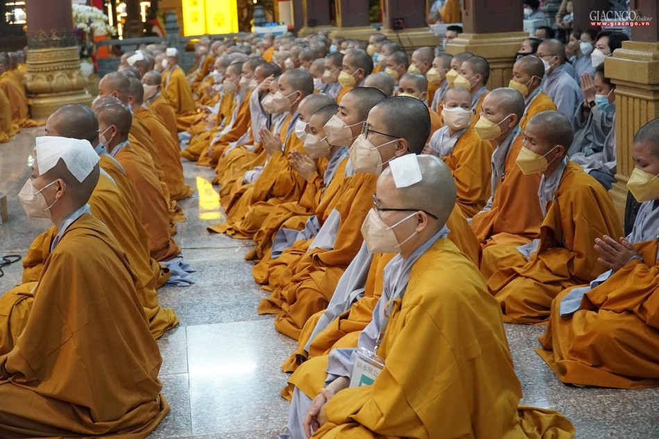 Hòa thượng Thích Lệ Trang, Trưởng ban Nghi lễ Phật giáo TP.HCM đương vi gia trì sư cùng chư tôn đức Ban kinh sư thuộc Ban Nghi lễ GHPGVN TP.HCM đã tuần tự tiến hành các nghi thức tham lễ Phật, xưng tán Tam bảo, hướng dẫn thân nhân chư hương linh tác pháp cung thỉnh Hòa thượng giới sư khai thị hương linh, thuyết U minh giới. Các tân Tỳ-kheo hộ đàn cùng đông đảo Phật tử tham dự cầu nguyện.