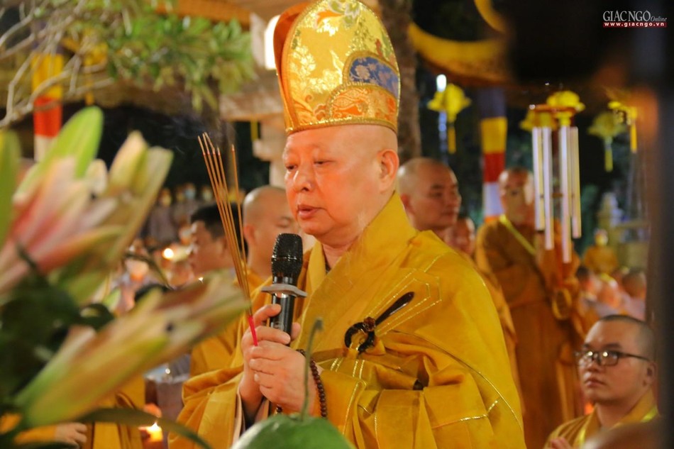 GNO - Tối 19-4, tại Tuyển Phật trường thiền viện Thường Chiếu, Ban Tổ chức đã thiết lễ thuyết U minh giới để âm dương cùng được lợi lạc, viên mãn những phần lễ nghi của Đại giới đàn Thiện Hoa.