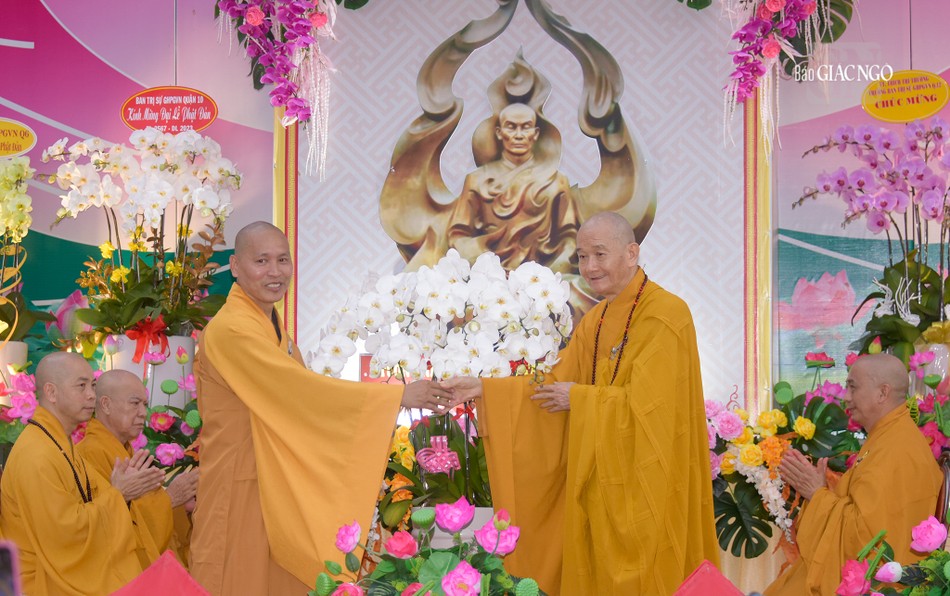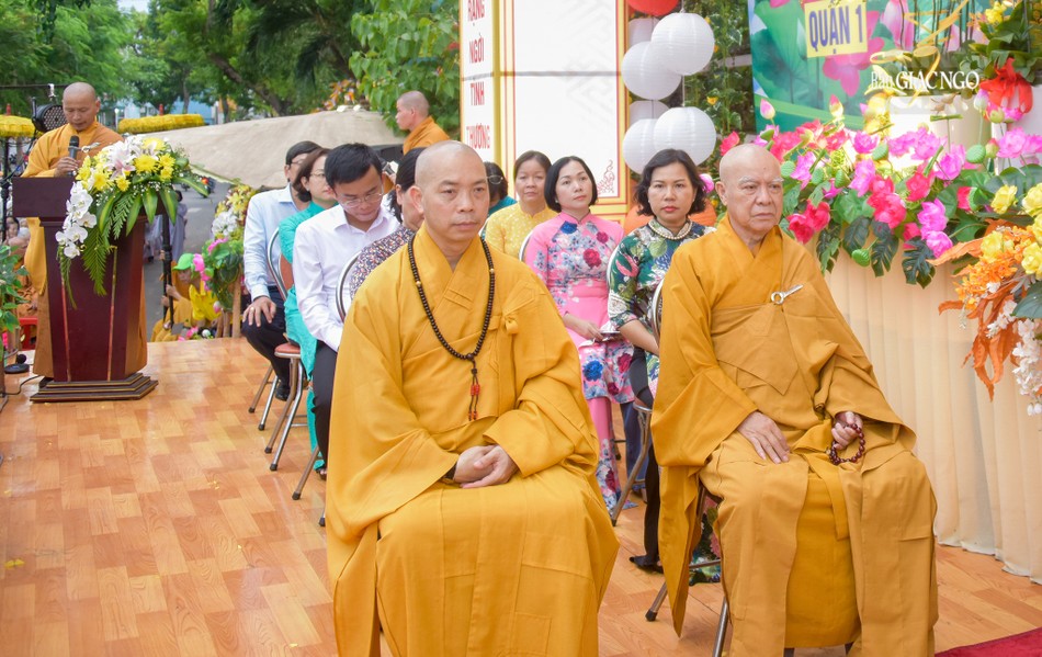 Tham dự buổi lễ có Trưởng lão Hòa thượng Thích Thanh Hùng, Ủy viên Thường trực Hội đồng Chứng minh; Hòa thượng Thích Nhựt Hỷ, Phó ban Trị sự kiêm Trưởng ban Hoằng pháp Phật giáo TP.HCM; Thượng tọa Thích Quang Thạnh, Phó ban Trị sự kiêm Trưởng ban Giáo dục Phật giáo TP.HCM; chư tôn đức Ban Chứng minh, Ban Trị sự Phật giáo Q.1, các quận lân cận; cùng với sự tham dự của đông đảo Tăng Ni, Phật tử các tự viện trên địa bàn Q.1.
