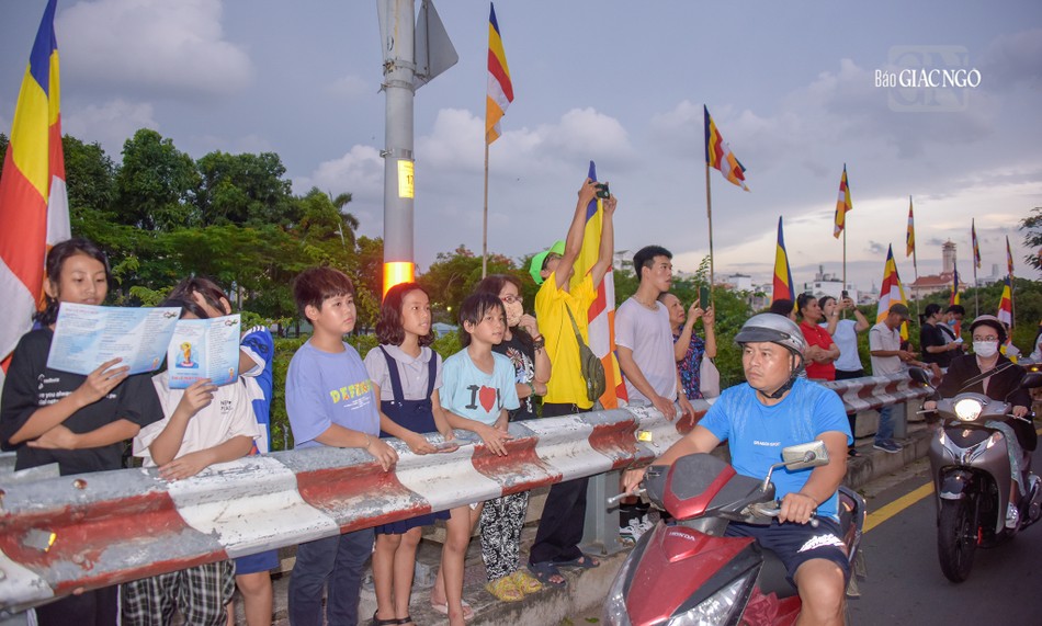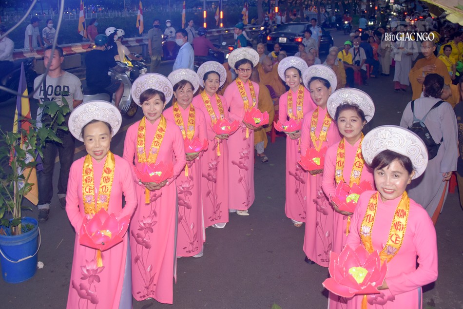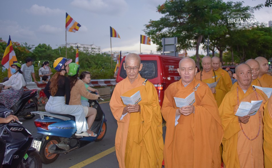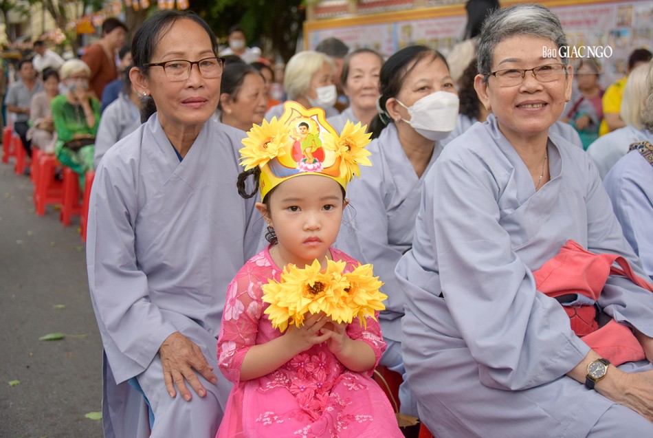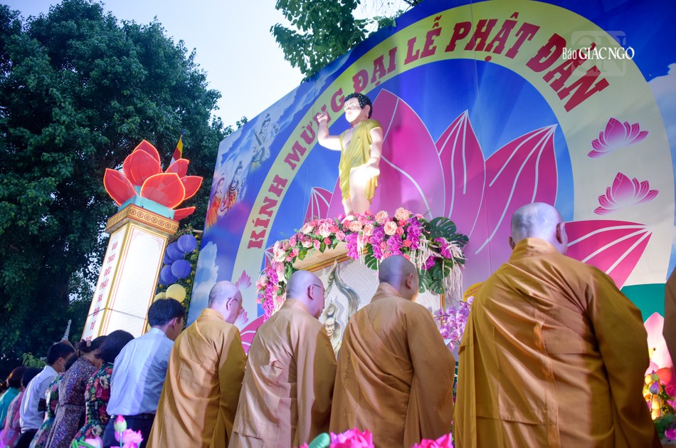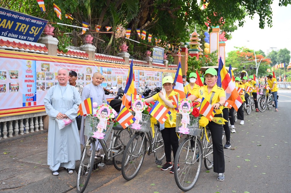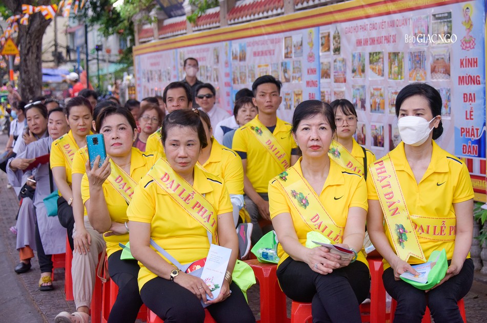 GNO - Chiều 14-4-ÂL (1-6-2023), toàn thể Tăng Ni, Phật tử Q.1 đã vân tập về lễ đài tổ đình Vạn Thọ để tham dự Đại lễ Phật đản Phật lịch 2567 do Ban Trị sự Phật giáo quận tổ chức.