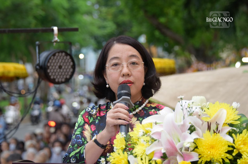 Để chào mừng Đại lễ Phật đản Phật lịch 2567 của Phật giáo Q.1, bà Mai Thị Hồng Hoa, Phó Chủ tịch UBND Q.1 phát biểu chúc sức khỏe đến chư Tăng Ni, tín đồ Phật giáo trên địa bàn. Bà cũng ghi nhận, đánh giá cao những thành quả mà Phật giáo Q.1 đã đạt được trong công tác an sinh xã hội thời gian qua và bày tỏ hy vọng Ban Trị sự GHPGVN quận tiếp tục hướng dẫn tín đồ chung sức cùng chính quyền xây dựng quận nhà phát triển hơn.