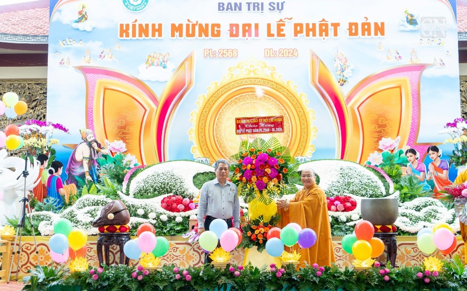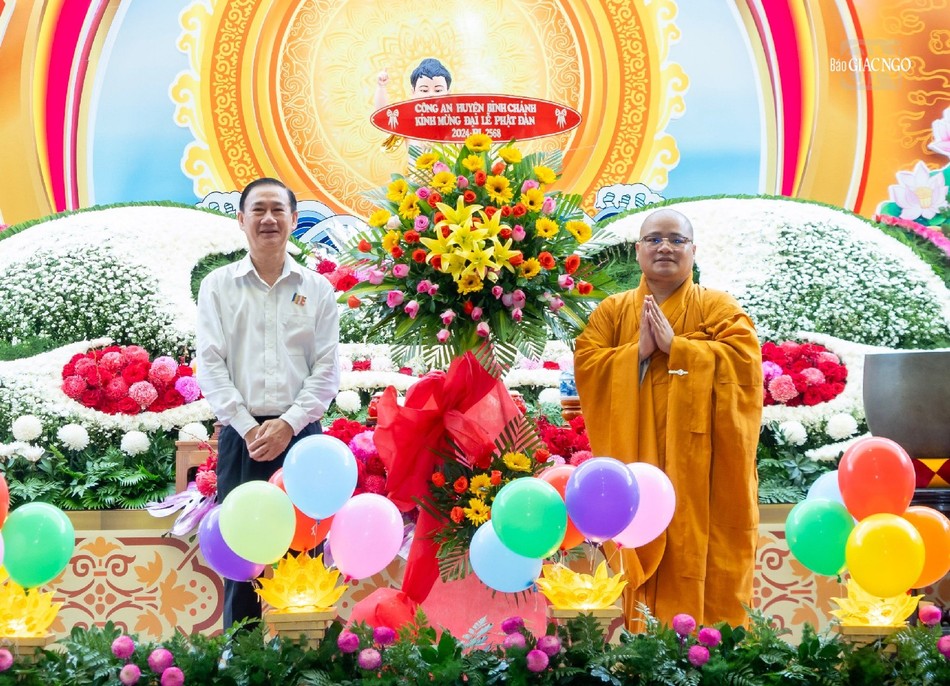 Phát biểu tại buổi lễ, ông Huỳnh Văn Phạm Hồng, đại diện lãnh đạo H.Bình Chánh có lời chúc mừng Phật đản an vui đến toàn thể giới Phật giáo trên địa bàn huyện và mong rằng Ban Trị sự, chư Tăng Ni tiếp tục phát huy tinh thần sống tốt đạo, đẹp đời, đồng hành cùng chính quyền trong các công tác an sinh xã hội.