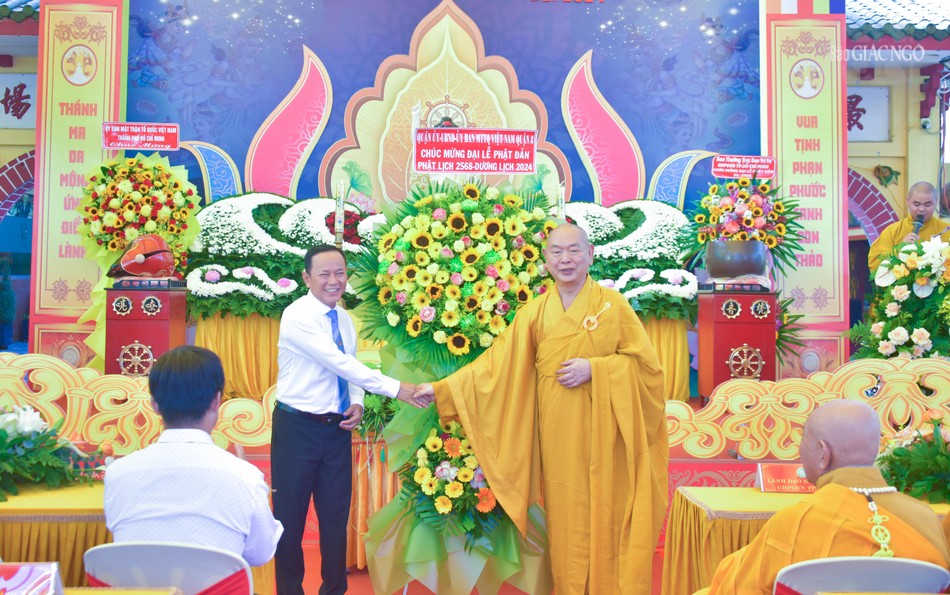 Thay mặt lãnh đạo chính quyền, bà Trần Thanh Hà, Chủ tịch Ủy ban MTTQVN Q.8 có lời chúc mừng đến toàn thể Tăng Ni, Phật tử Q.8 nhân sự kiện Đại lễ Phật đản Phật lịch 2568. Bà cũng mong rằng, các tín đồ Phật giáo quận nhà sẽ tiếp tục phát huy các giá trị cao đẹp của mình, góp phần cùng chính quyền địa phương trong các công tác an sinh xã hội, hỗ trợ người dân có cuộc sống tốt hơn.