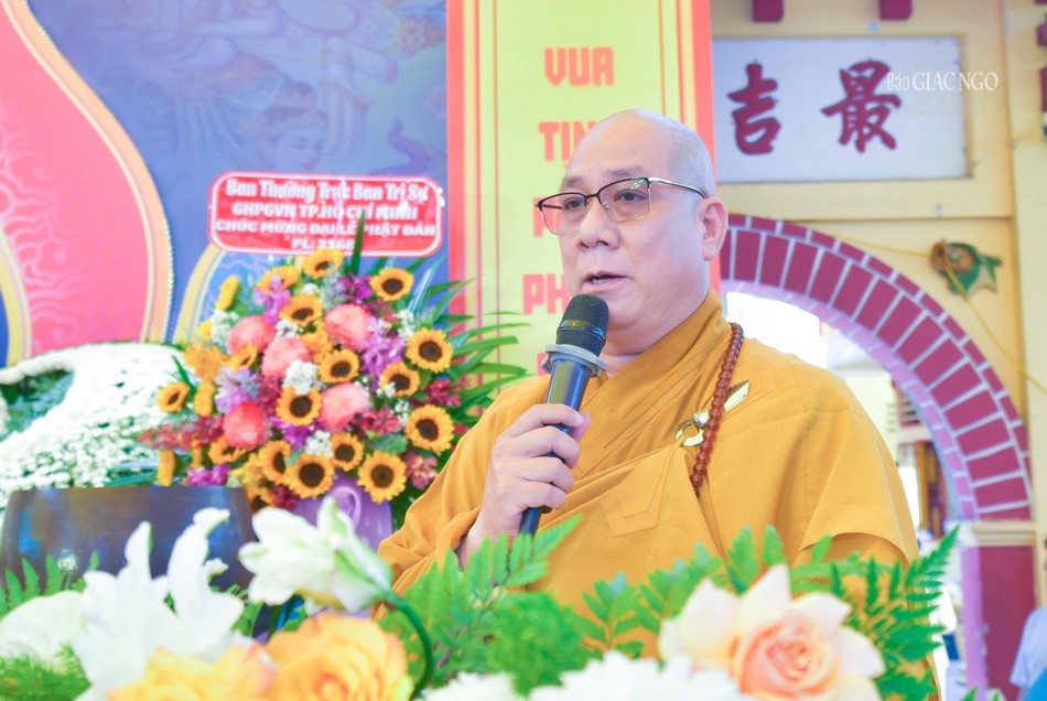 Thượng tọa Thích Huệ Công đọc Diễn văn Phật đản Phật lịch 2568 của Trưởng lão Hòa thượng Chủ tịch Hội đồng Trị sự gửi đến toàn thể Tăng Ni, Phật tử.