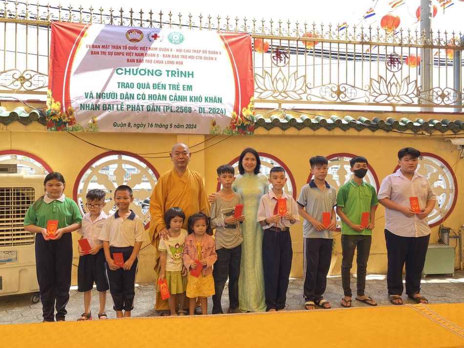 Nhân Đại lễ Phật đản, Ban Trị sự GHPGVN Q.8 cũng trao tặng 130 phần quà đến người dân có hoàn cảnh khó khăn trên địa bàn quận với tổng kinh phí là 130 triệu đồng, do các tự viện chung tay đóng góp.