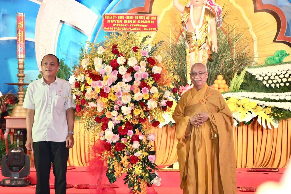 Phát biểu tại buổi lễ, bà Trương Thoại Linh đại diện chính quyền H.Bình Chánh phát biểu ghi nhận và đánh giá cao sự đóng góp của chư Tăng Ni, Phật tử trên địa bàn huyện.