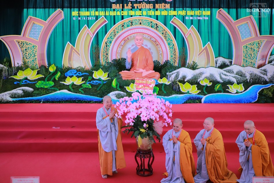 Ni trưởng Thích nữ Nhật Khương, Ni trưởng Thích nữ Như Như, Ni sư Thích nữ Như Hương, Trưởng ban Tổ chức Đại lễ cùng chư Ni Ban Tổ chức đã trao biểu tượng và cờ luân lưu đăng cai tổ chức Đại lễ tưởng niệm vào năm 2025 đến đơn vị Phân ban Ni giới Thủ đô Hà Nội. Đại diện Phân ban Ni giới Phật giáo Thủ đô phát biểu nhận nhiệm vụ.