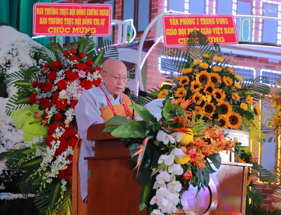 “TƯGH tin tưởng tất cả khả năng lãnh đạo Ni đoàn của Ni giới, bên cạnh đại Tăng bên cạnh GHPGVN, chư Ni sẽ có nhiều đóng góp cho sự phát triển Giáo hội ổn định trang nghiêm, đồng hành cùng dân tộc”, Trưởng lão Hòa thượng Thích Thiện Nhơn đạo từ chứng minh.