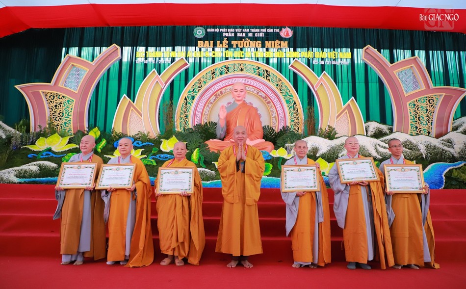 Ghi nhận công đức đóng góp của Phân ban Ni giới thành phố, GHPGVN tặng Bằng tuyên dương công đức đến tập thể Phân ban Ni giới thành phố và 8 cá nhân; UBND TP.Cần Thơ tặng Bằng khen đến Phân ban Ni giới thành phố với nhiều đóng góp trong công tác từ thiện năm 2023.