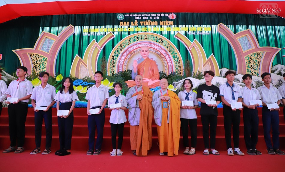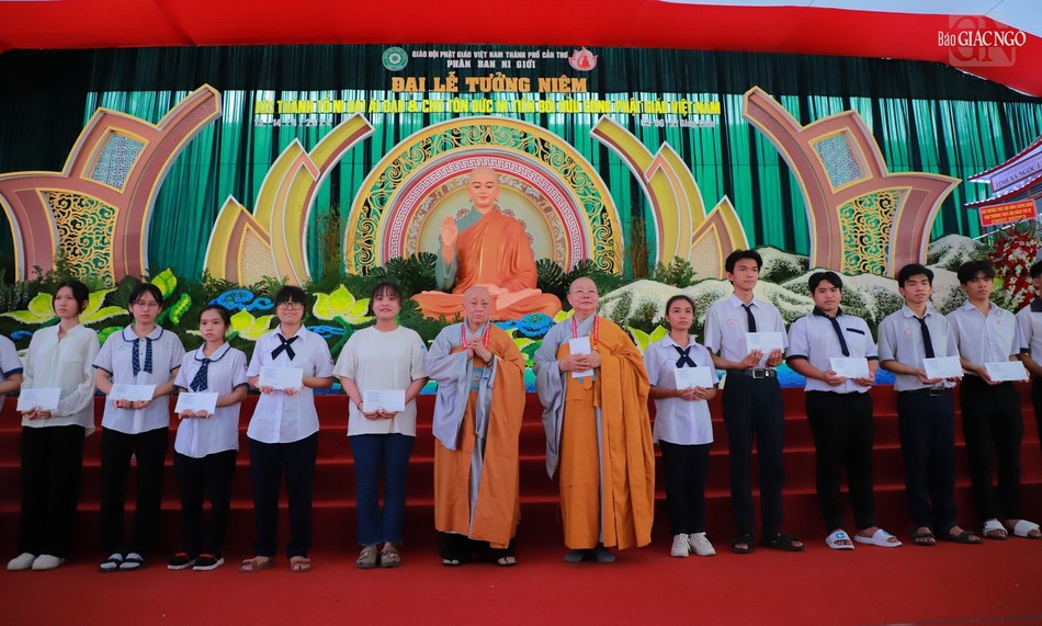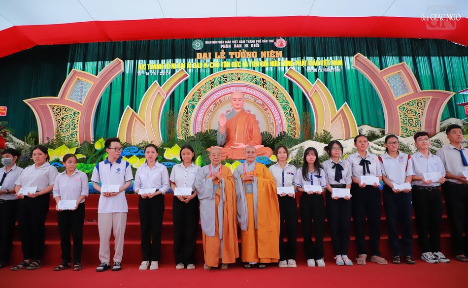 Dịp này, Phân ban Ni giới thành phố cúng dường những phần học bổng đến 30 chư Tăng Nam tông Khmer Học viện Nam tông Khmer tại TP.Cần Thơ và 90 suất học bổng đến học sinh, sinh viên các quận huyện thuộc TP.Cần Thơ, mỗi suất học bổng trị giá 2 triệu đồng.