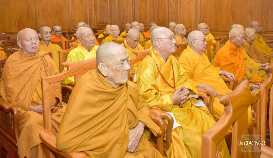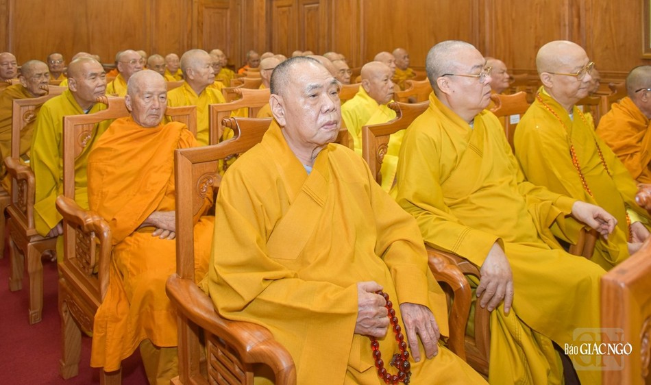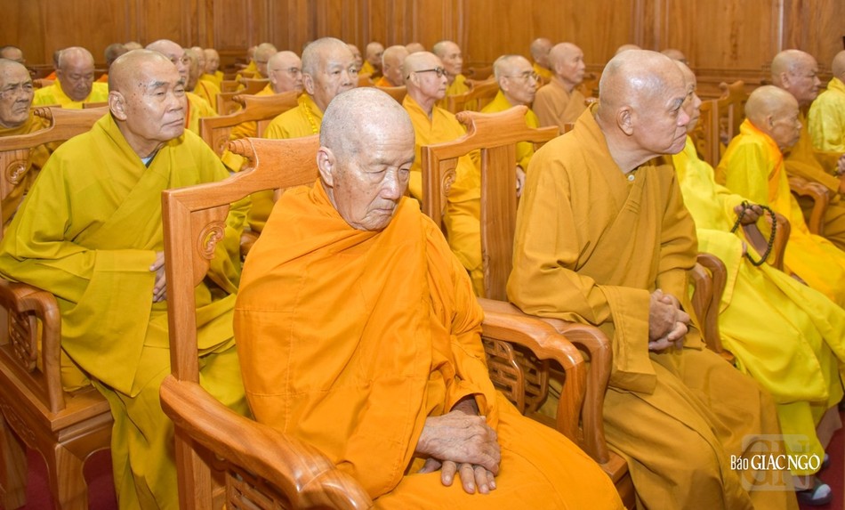 Sau khi niệm hồng danh Đức Phật Bổn Sư Thích Ca Mâu Ni, toàn thể chư vị Trưởng lão đã dành một phút mặc niệm tưởng nhớ cố Trưởng lão Hòa thượng Dương Nhơn, Phó Pháp chủ GHPGVN và chư vị Trưởng lão Thành viên Hội đồng Chứng minh viên tịch trong năm qua.