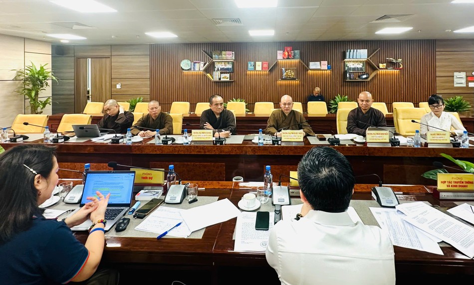 Thượng tọa Thích Đức Thiện cũng bày tỏ sự cảm ơn sâu sắc đến lãnh đạo đài và thông tin chi tiết về Đại lễ, phân công đầu mối công tác kịch bản, chương trình hợp tác truyền thông giữa Giáo hội và VTV.